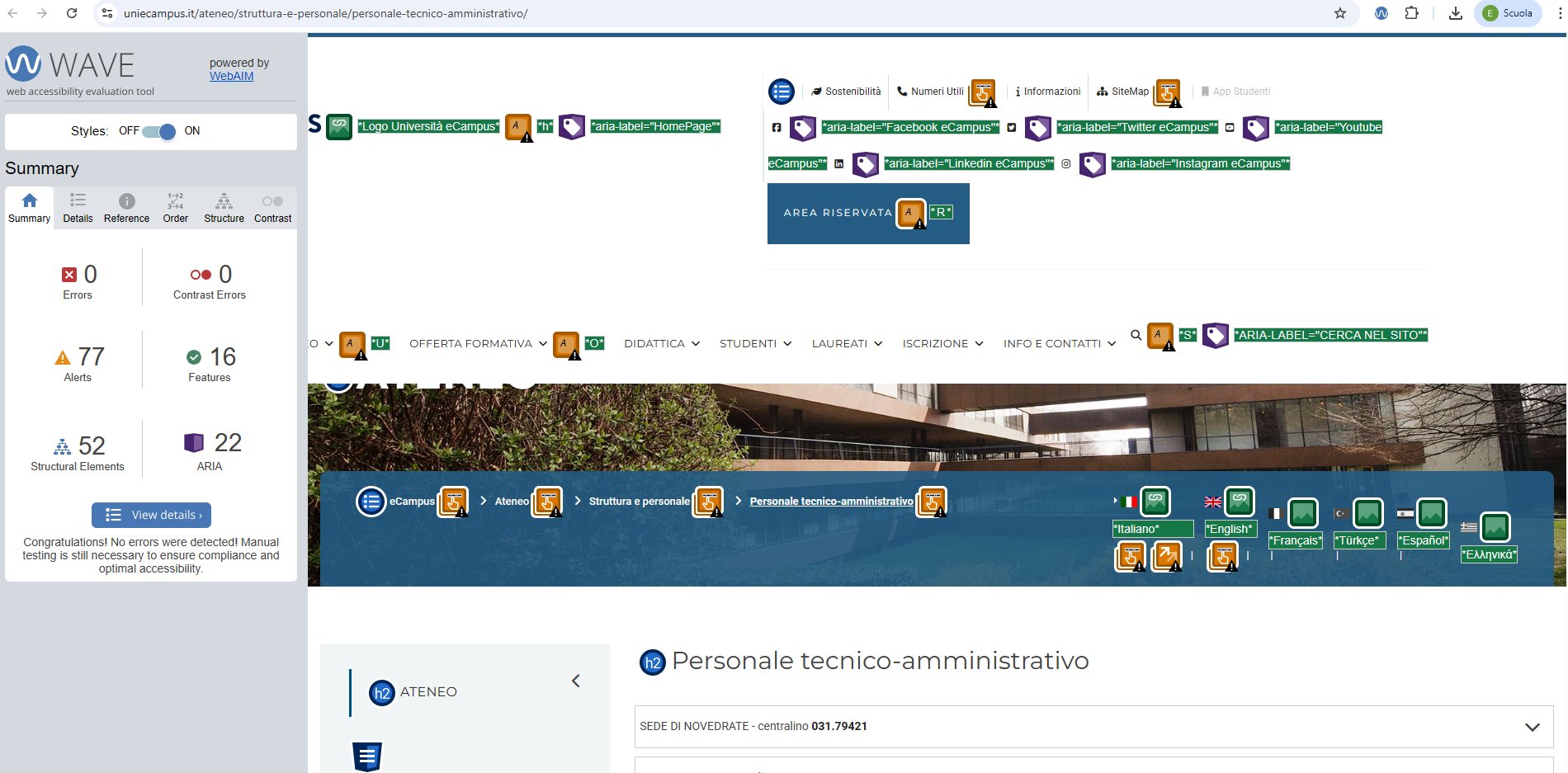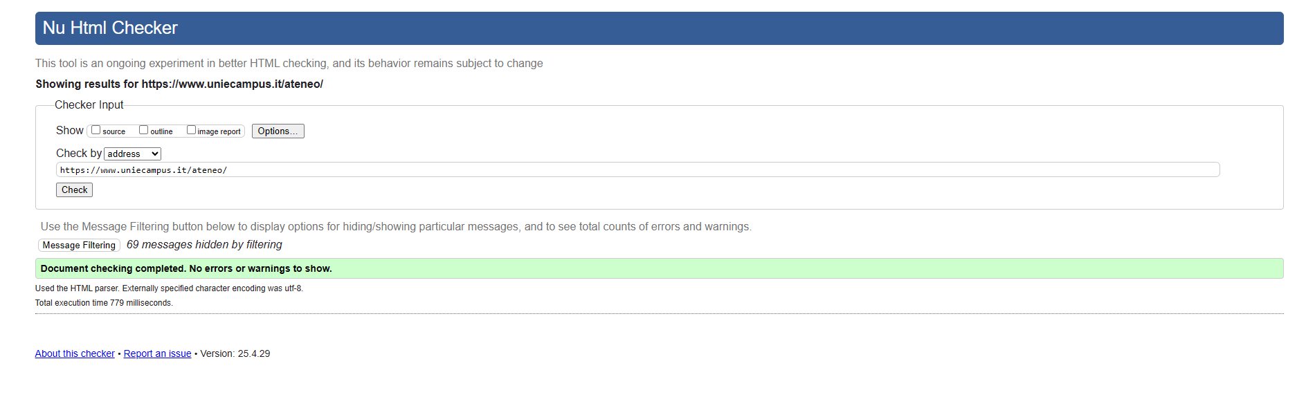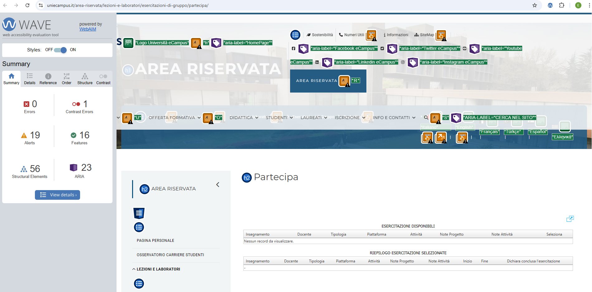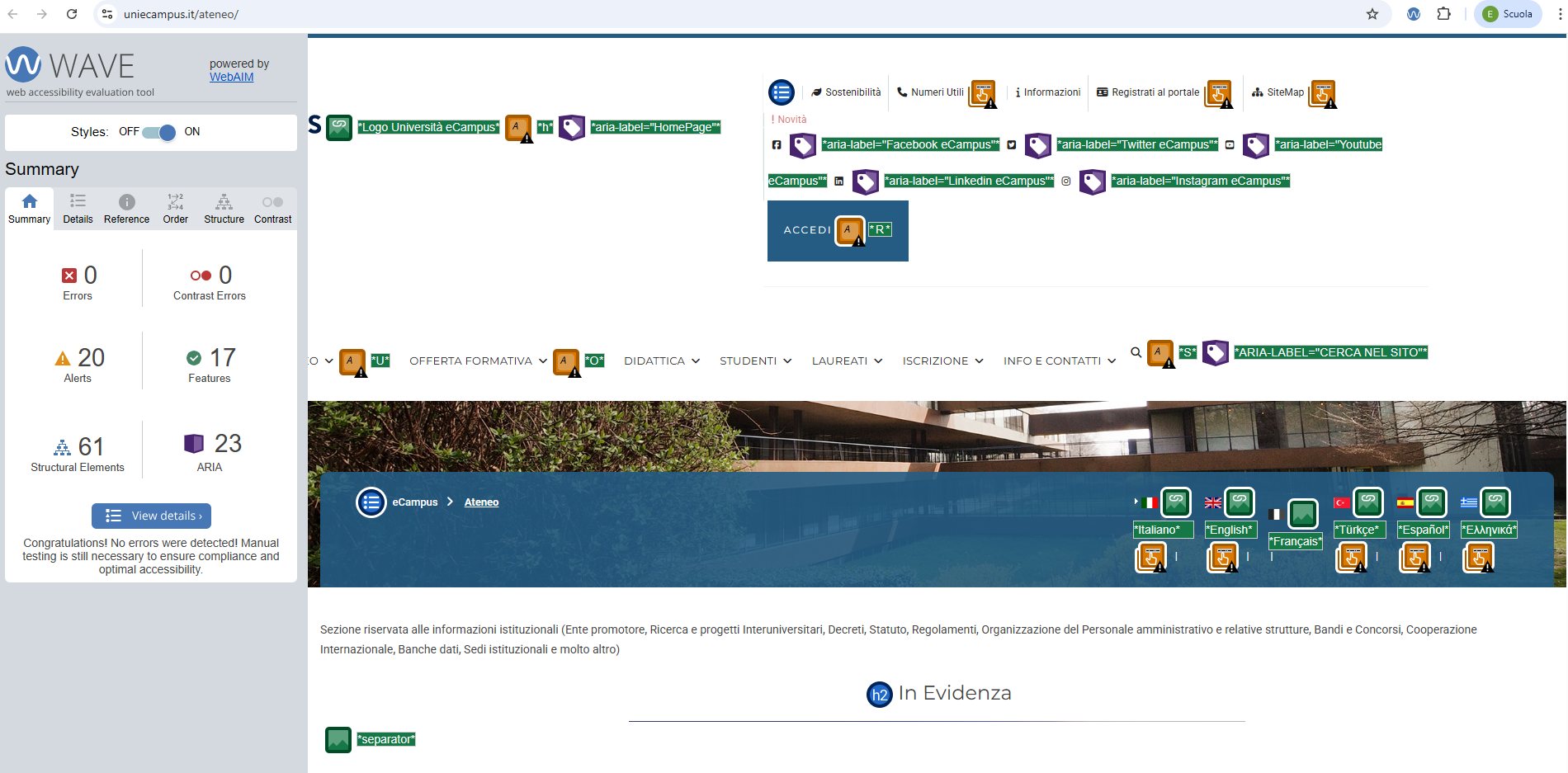 Periodicamente il portale viene sottoposto a test automatizzati di accessibilità e di usabilità (il portale è responsive, quindi fruibile anche da strumenti diversi dallo schermo del computer, quali tablet e smartphone), di cui si possono consultare di seguito i risultati.