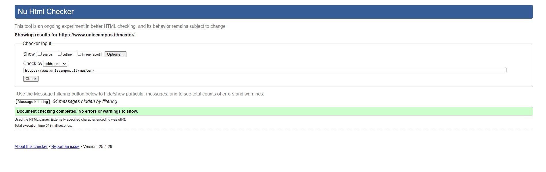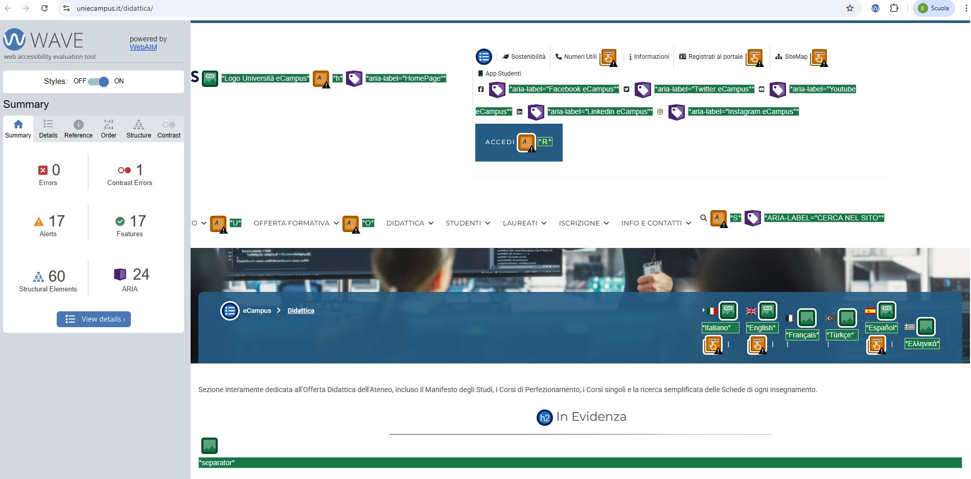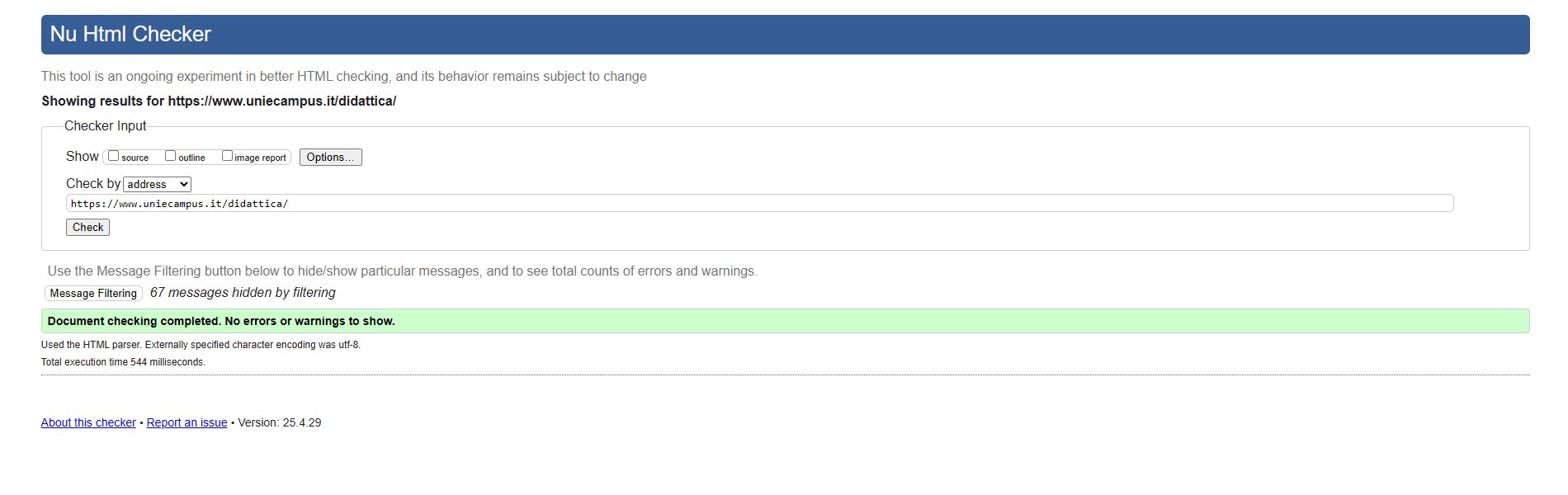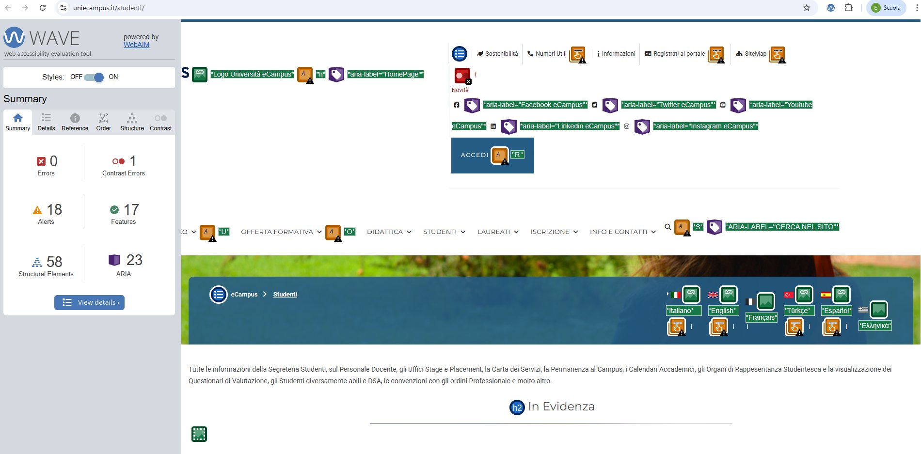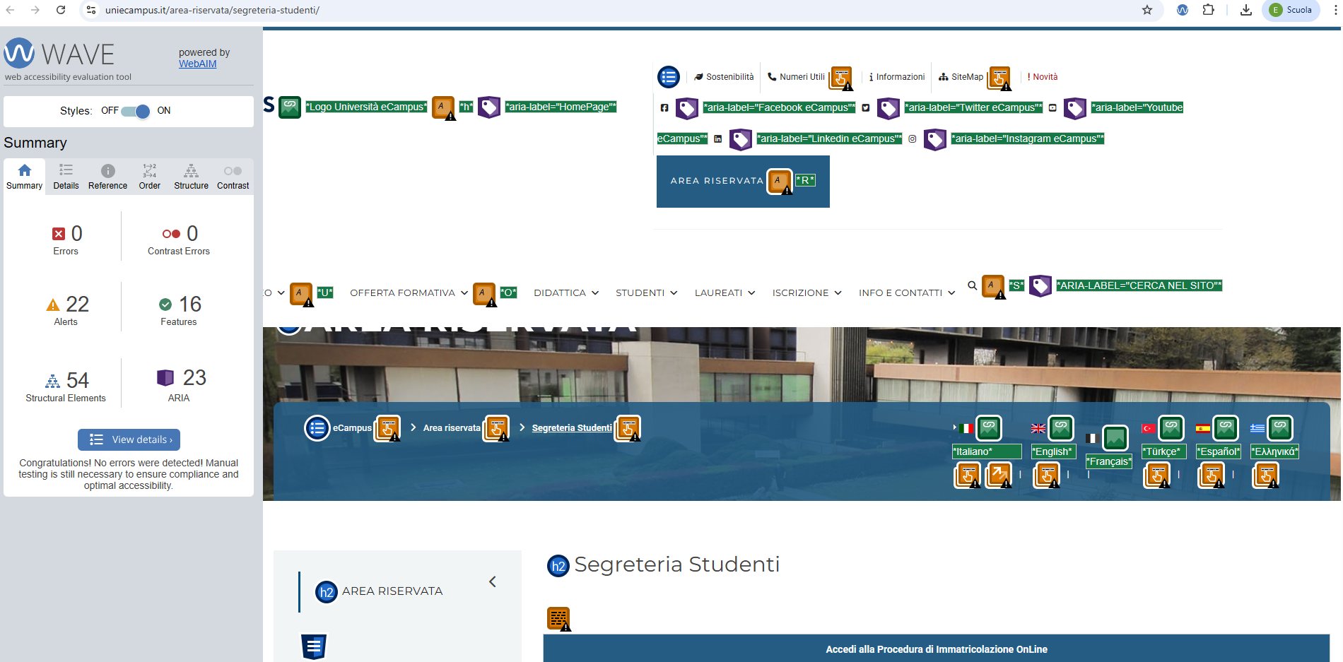 Periodicamente il portale viene sottoposto a test automatizzati di accessibilità e di usabilità (il portale è responsive, quindi fruibile anche da strumenti diversi dallo schermo del computer, quali tablet e smartphone), di cui si possono consultare di seguito i risultati.