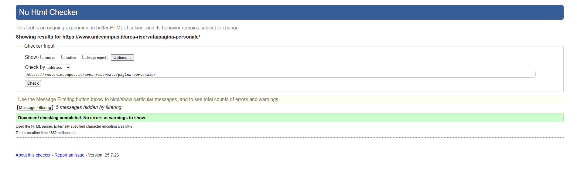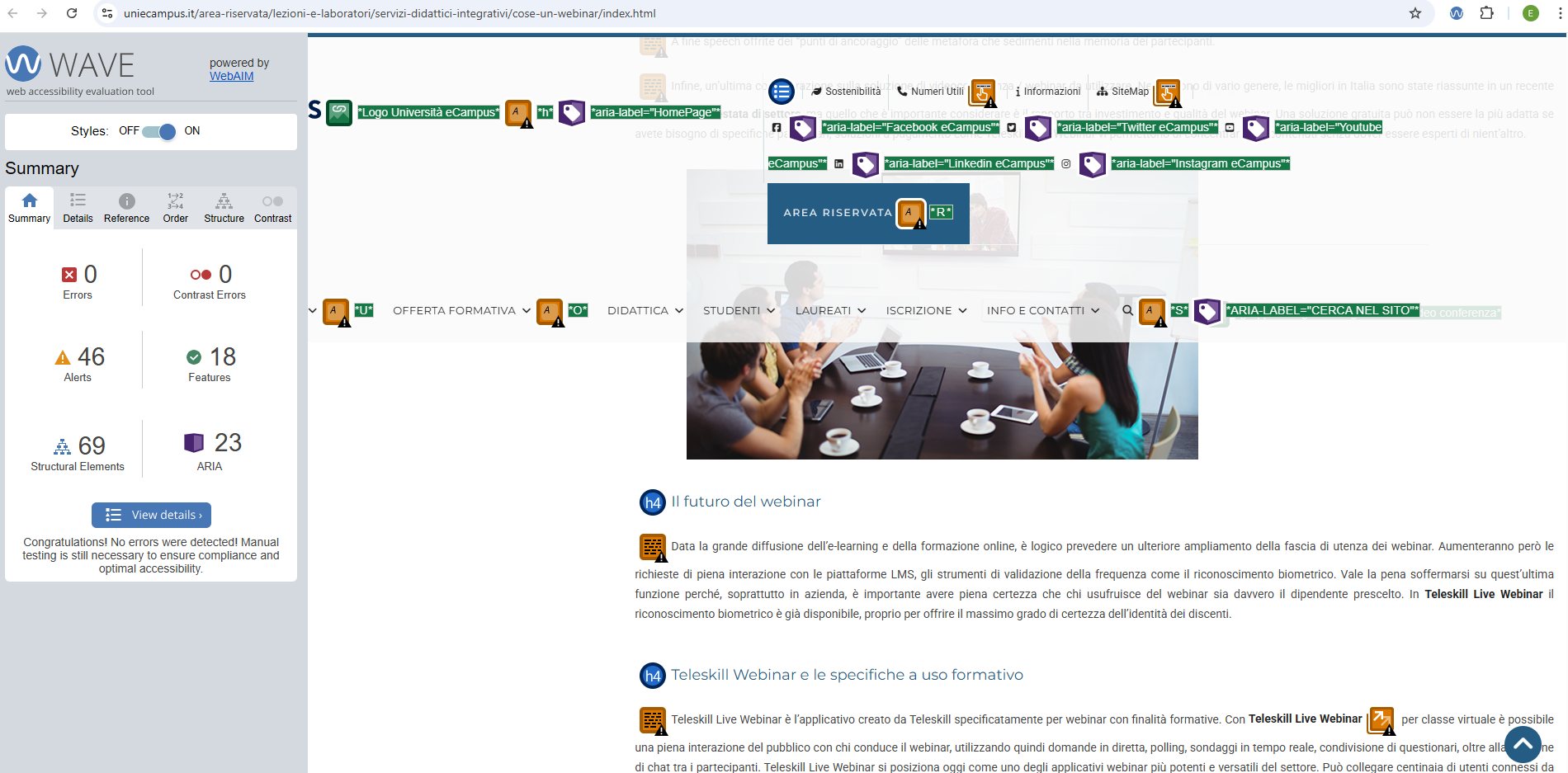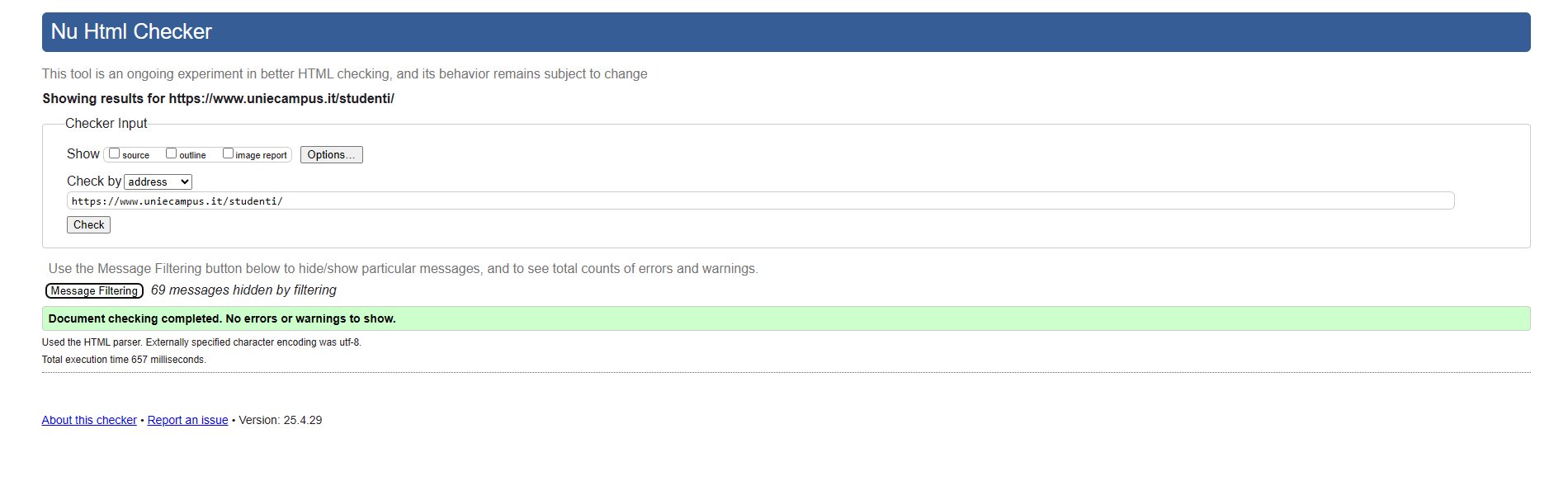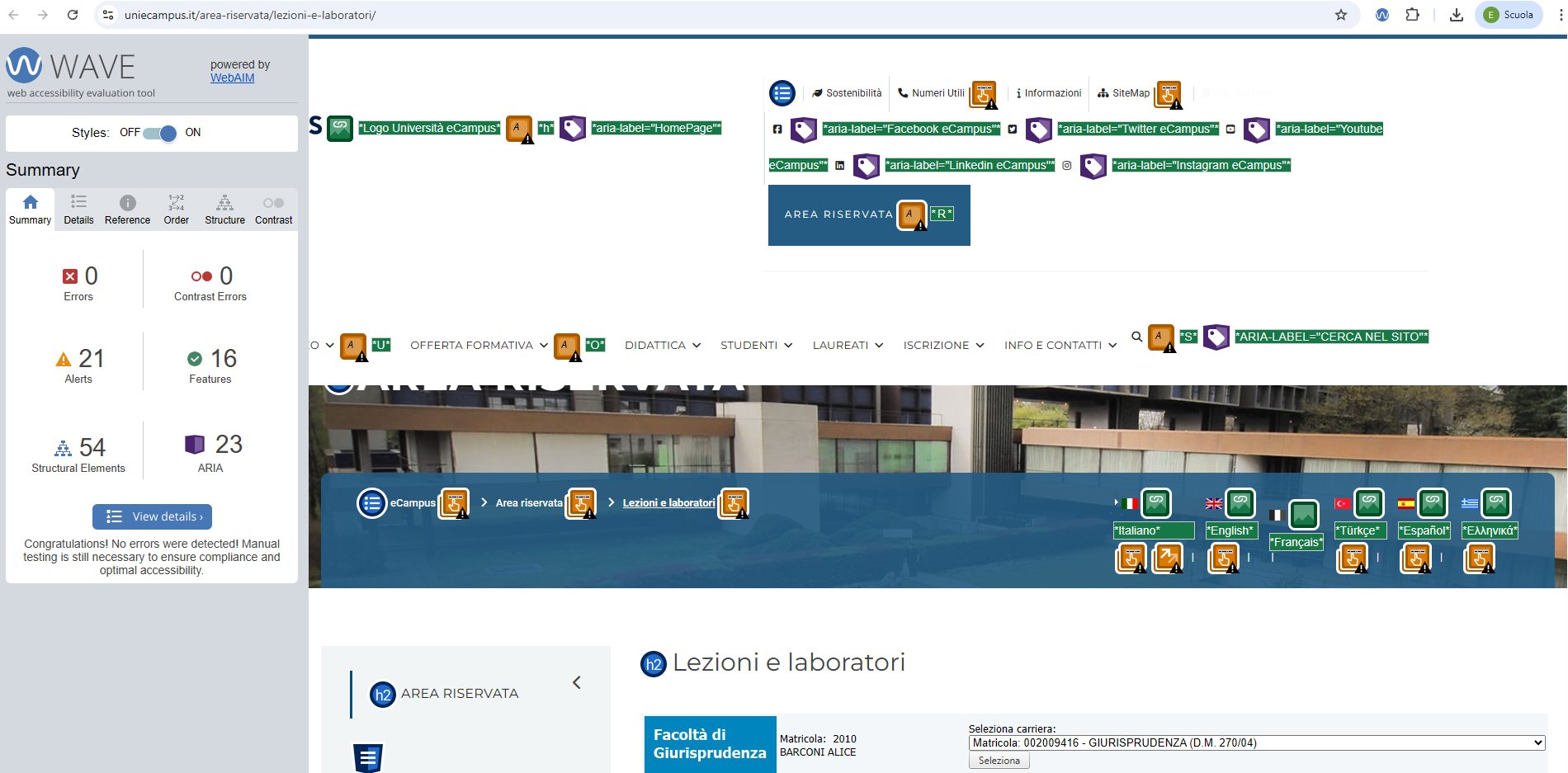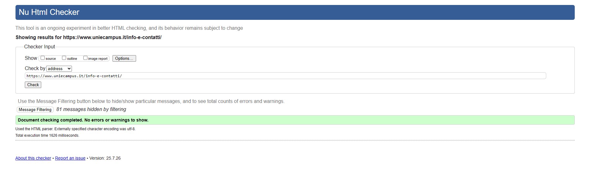 Periodicamente il portale viene sottoposto a test automatizzati di accessibilità e di usabilità (il portale è responsive, quindi fruibile anche da strumenti diversi dallo schermo del computer, quali tablet e smartphone), di cui si possono consultare di seguito i risultati.