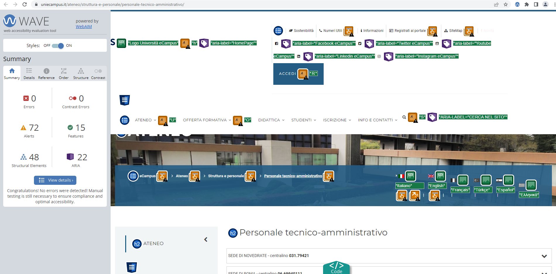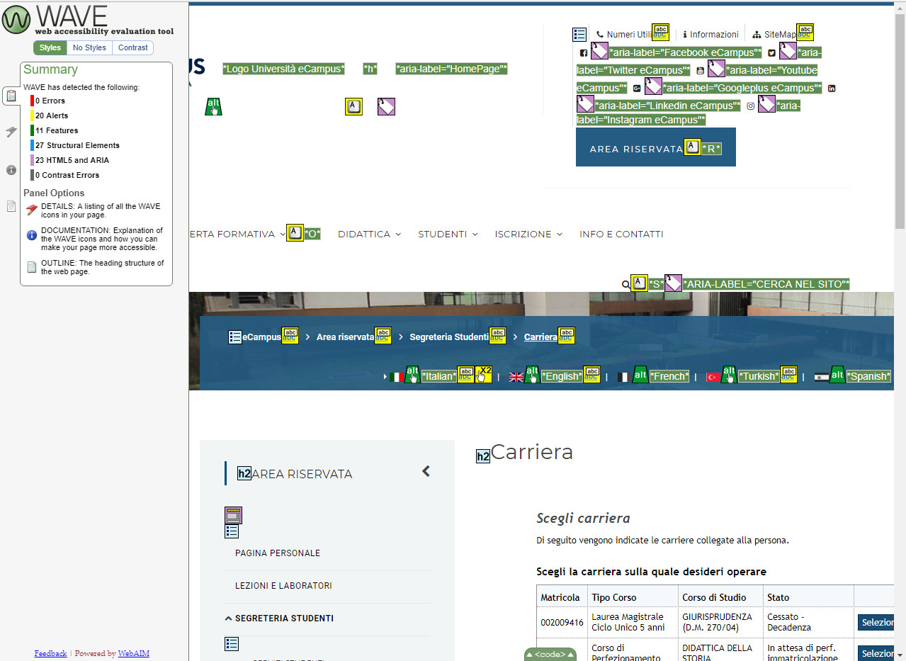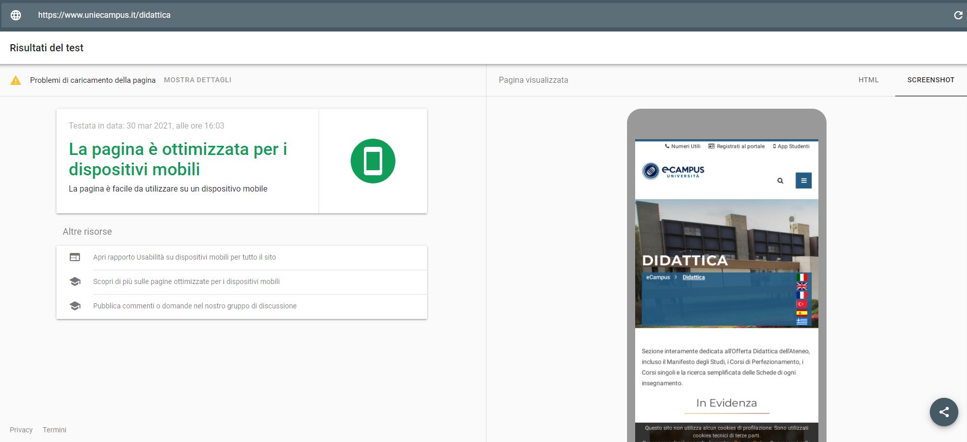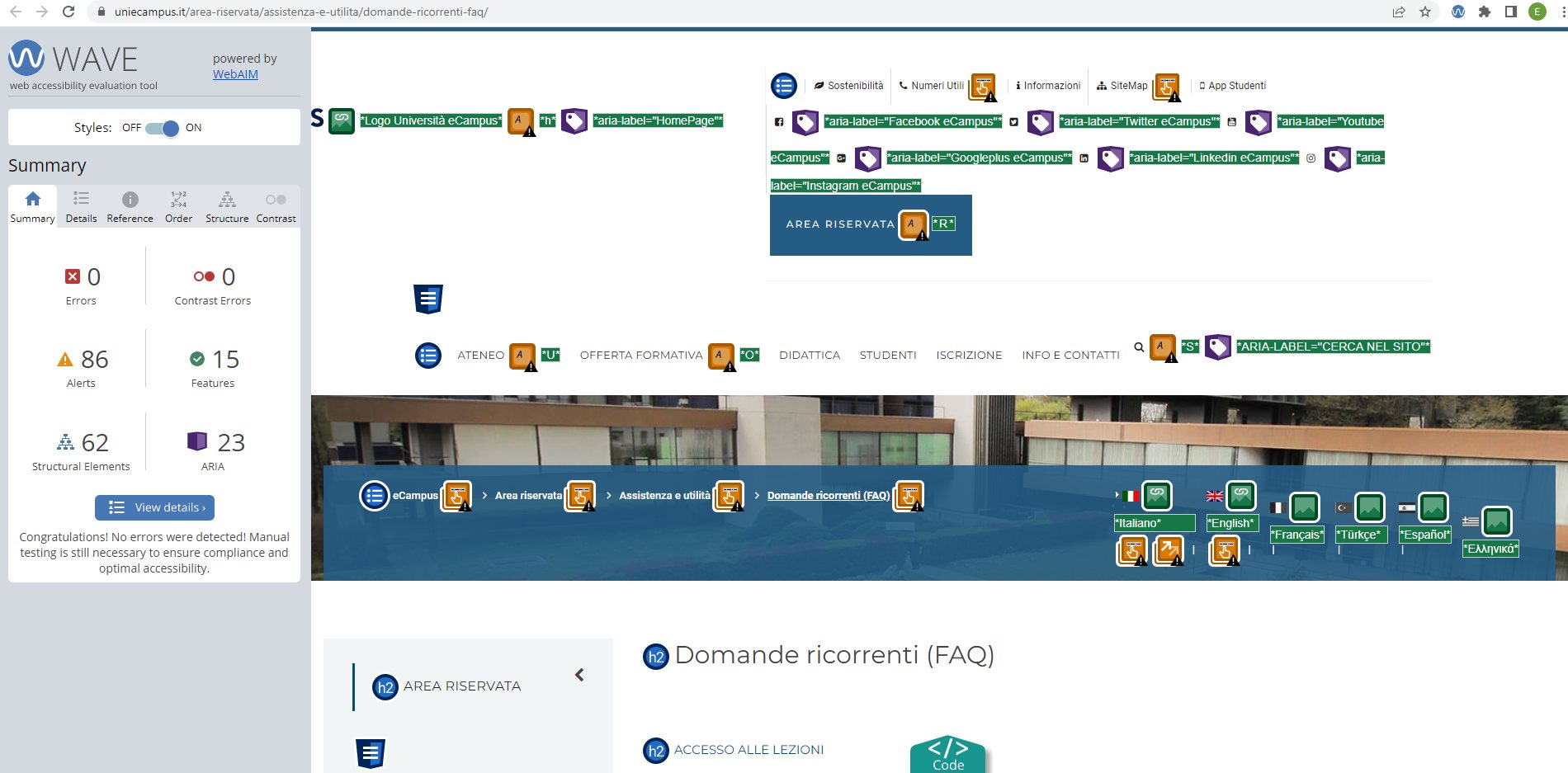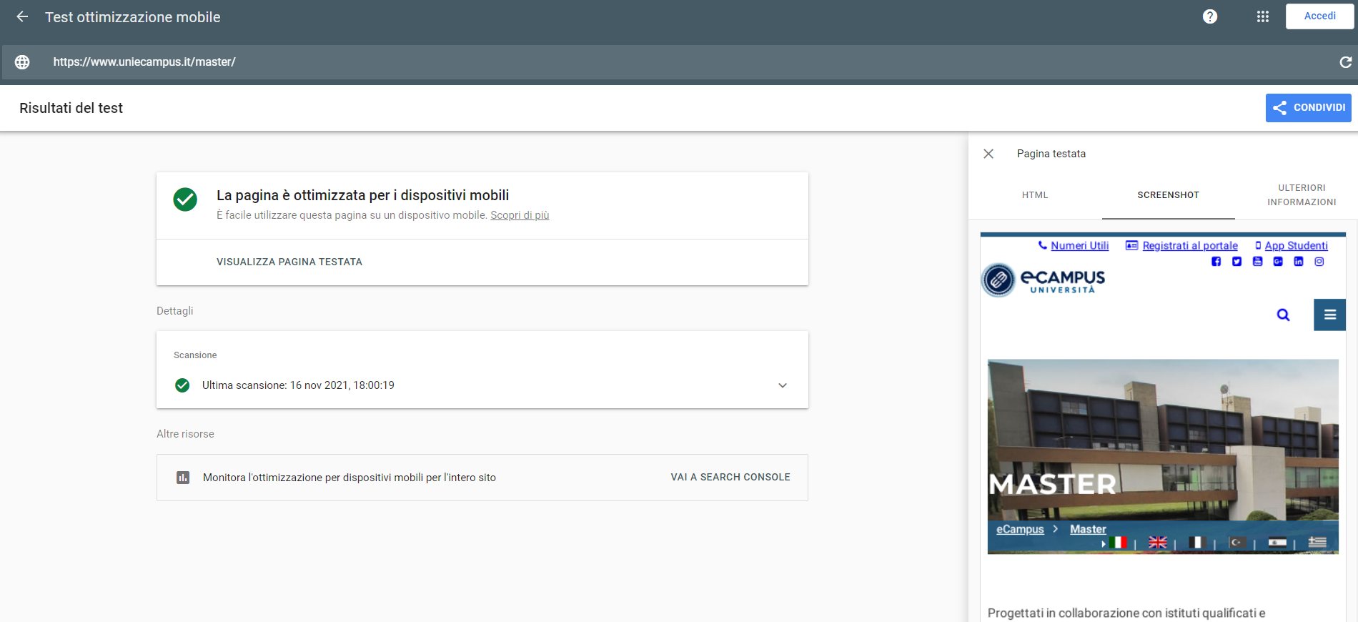 Periodicamente il portale viene sottoposto a test automatizzati di accessibilità e di usabilità (il portale è responsive, quindi fruibile anche da strumenti diversi dallo schermo del computer, quali tablet e smartphone), di cui si possono consultare di seguito i risultati.