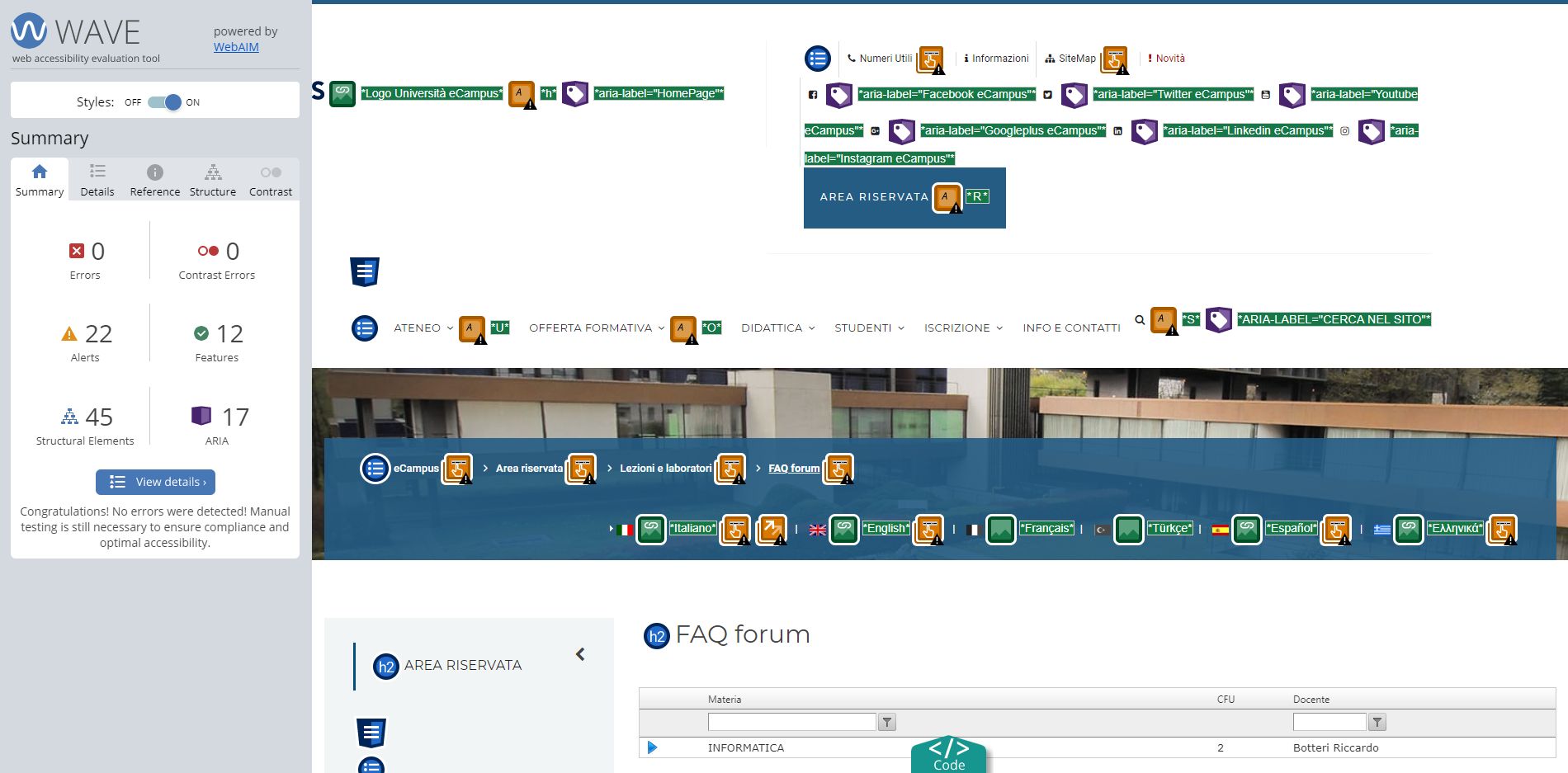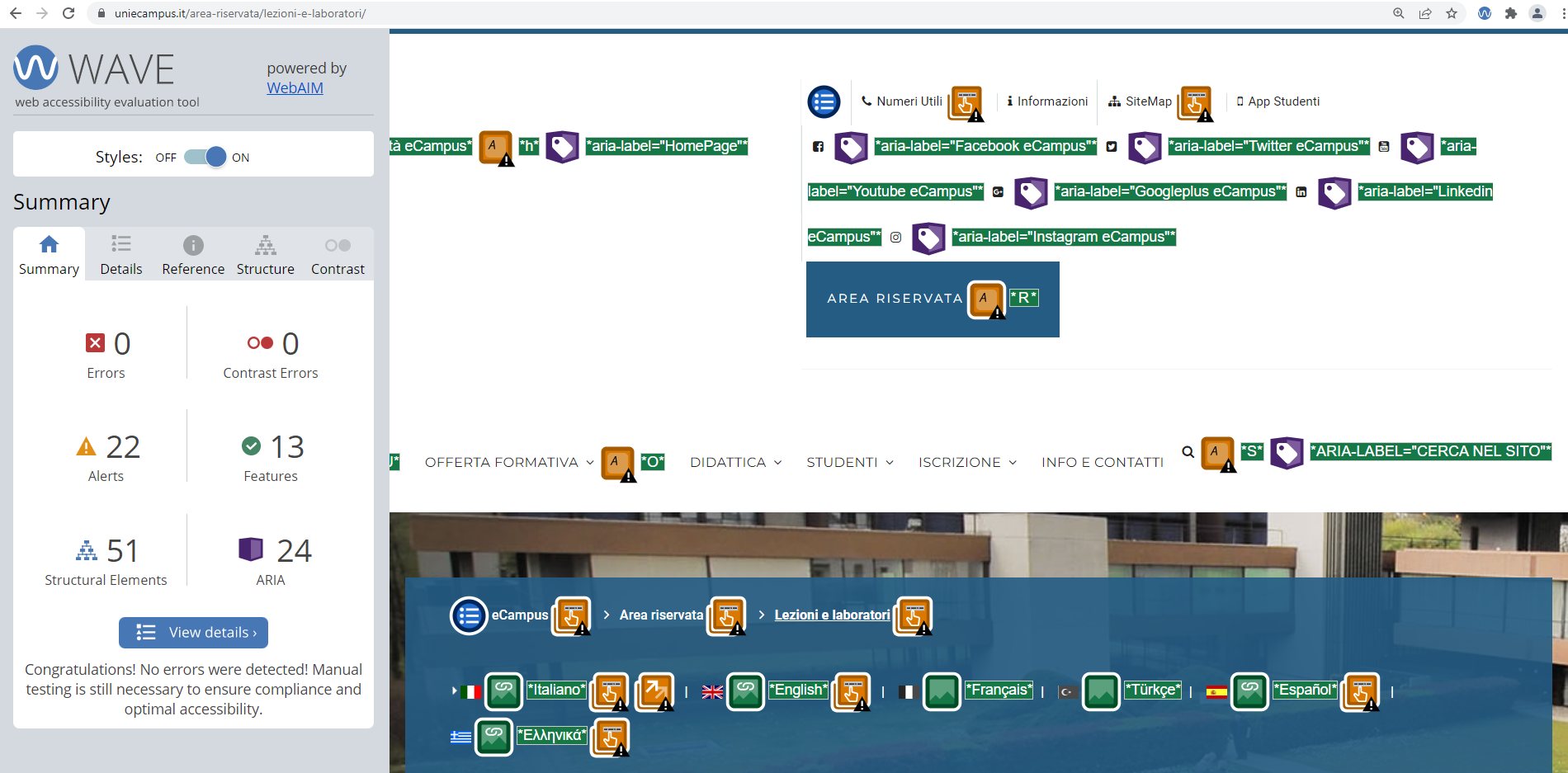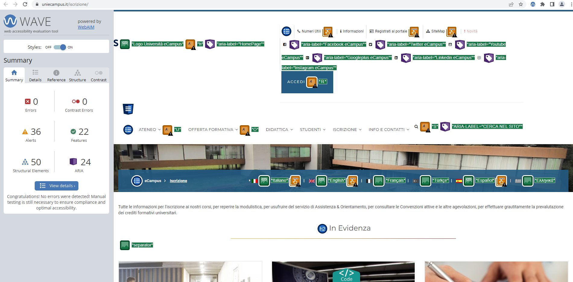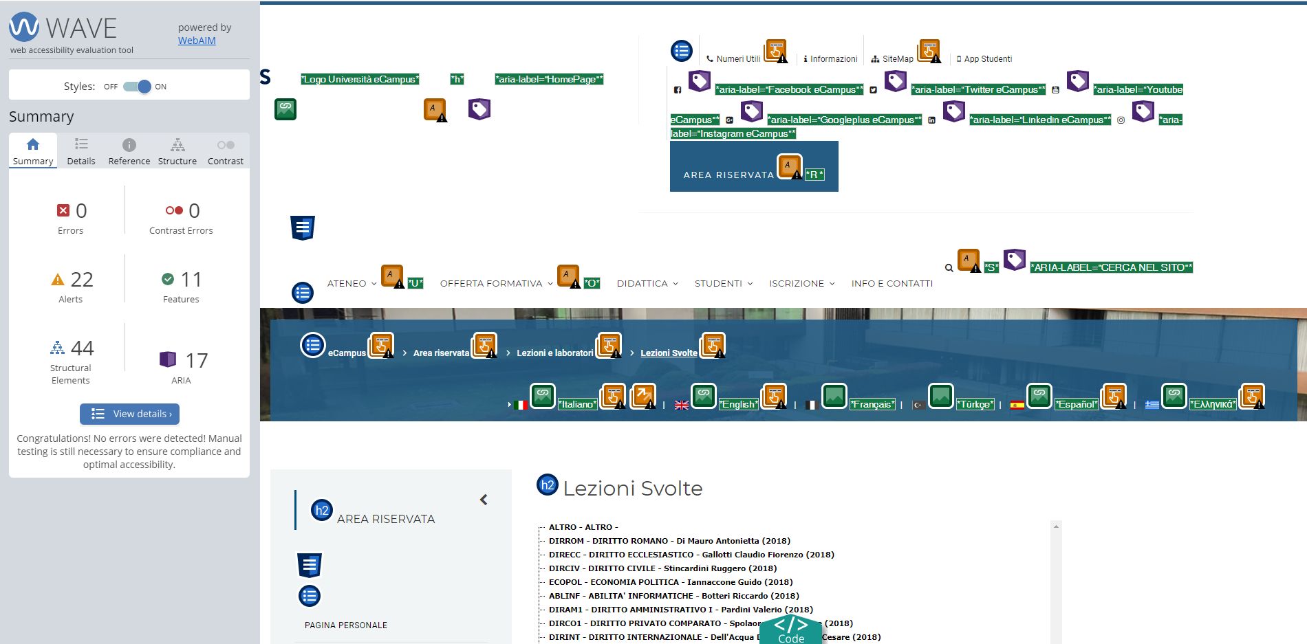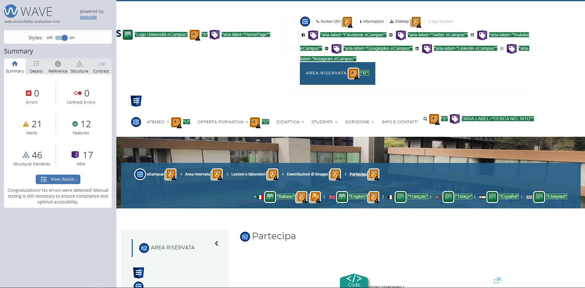 Periodicamente il portale viene sottoposto a test automatizzati di accessibilità e di usabilità (il portale è responsive, quindi fruibile anche da strumenti diversi dallo schermo del computer, quali tablet e smartphone), di cui si possono consultare di seguito i risultati.