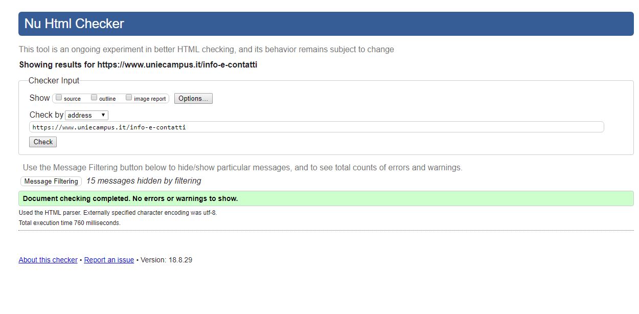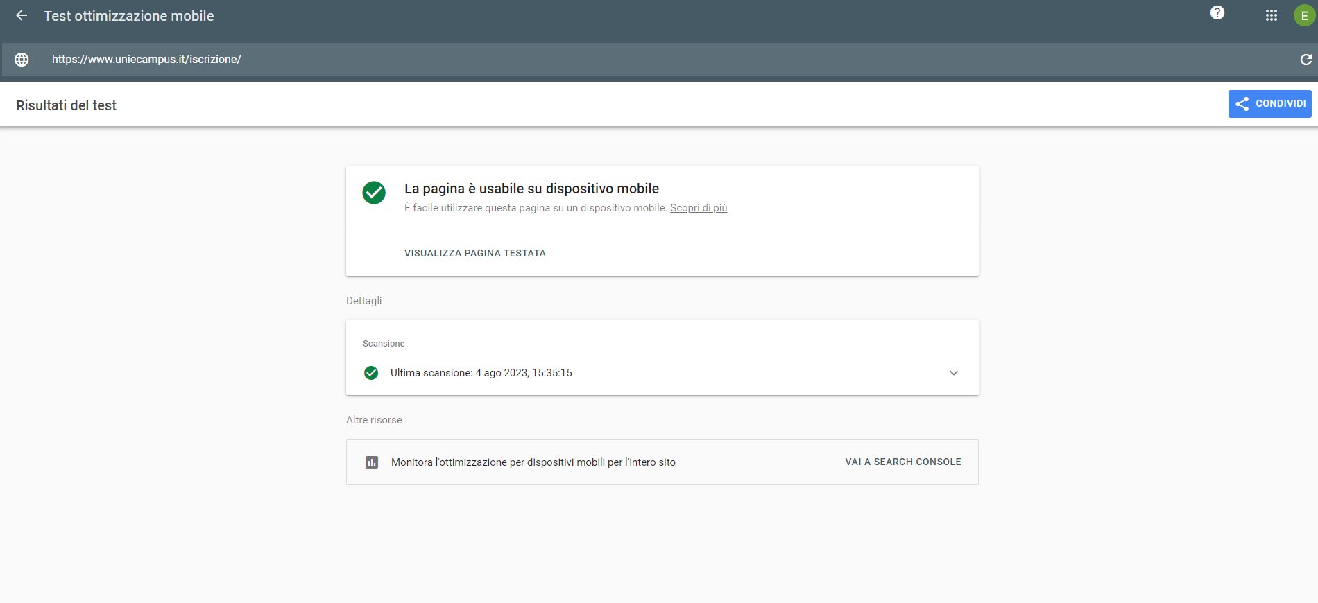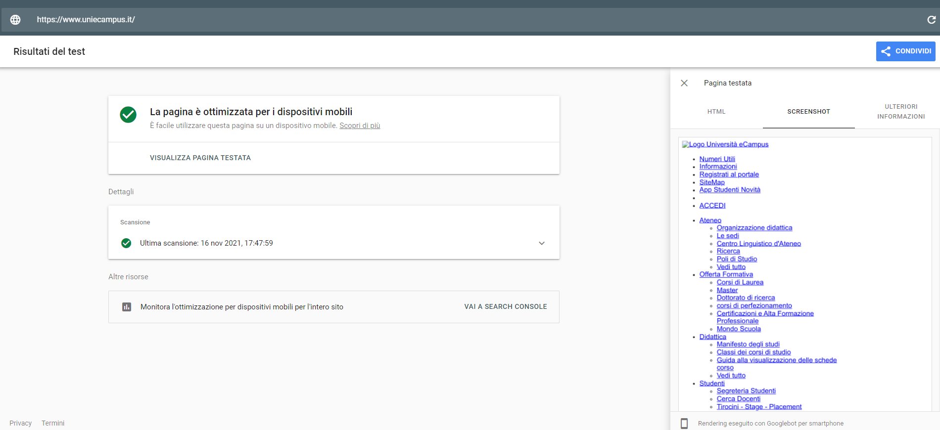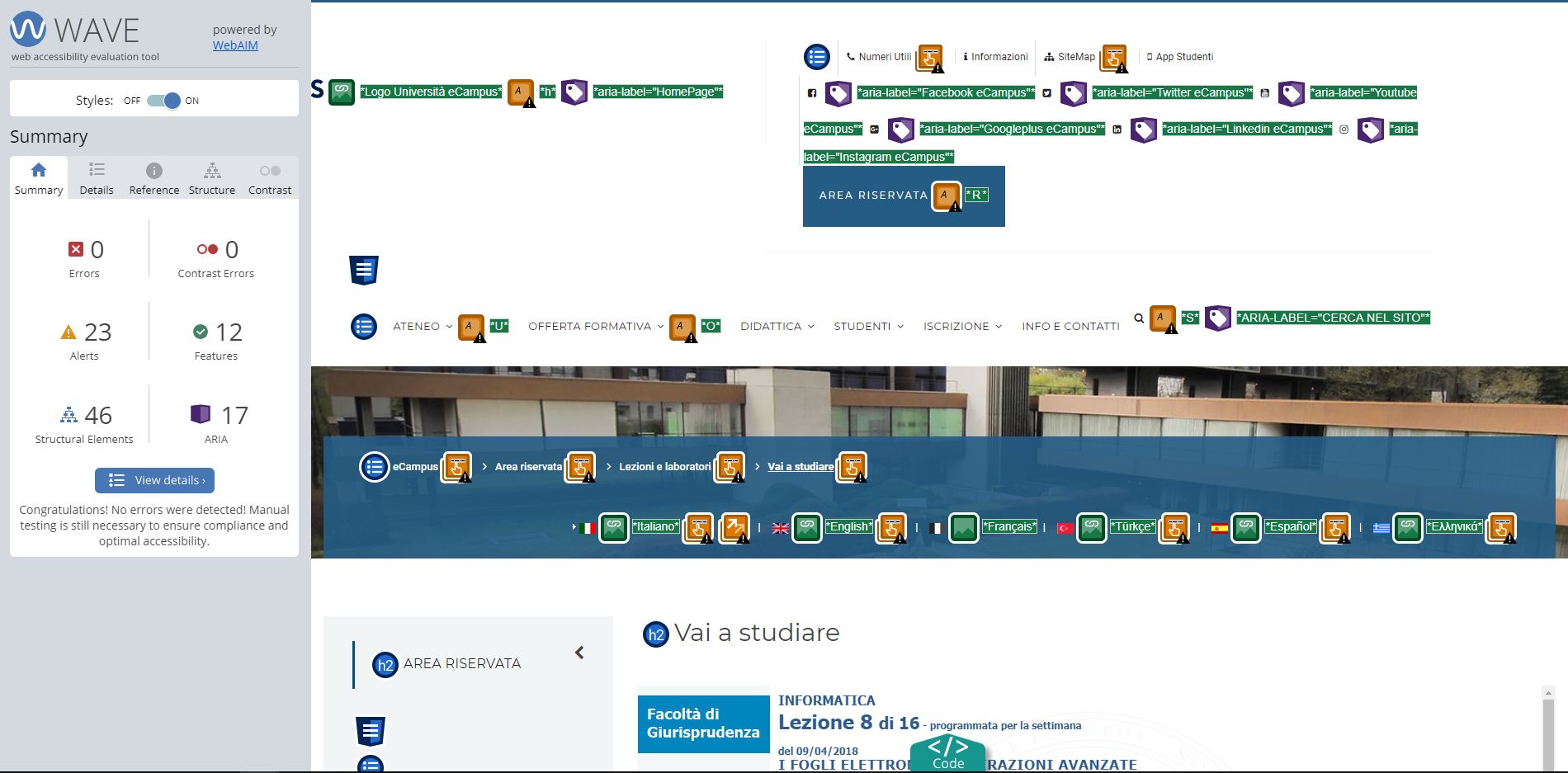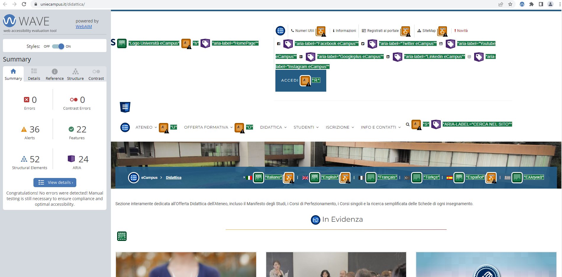 Periodicamente il portale viene sottoposto a test automatizzati di accessibilità e di usabilità (il portale è responsive, quindi fruibile anche da strumenti diversi dallo schermo del computer, quali tablet e smartphone), di cui si possono consultare di seguito i risultati.