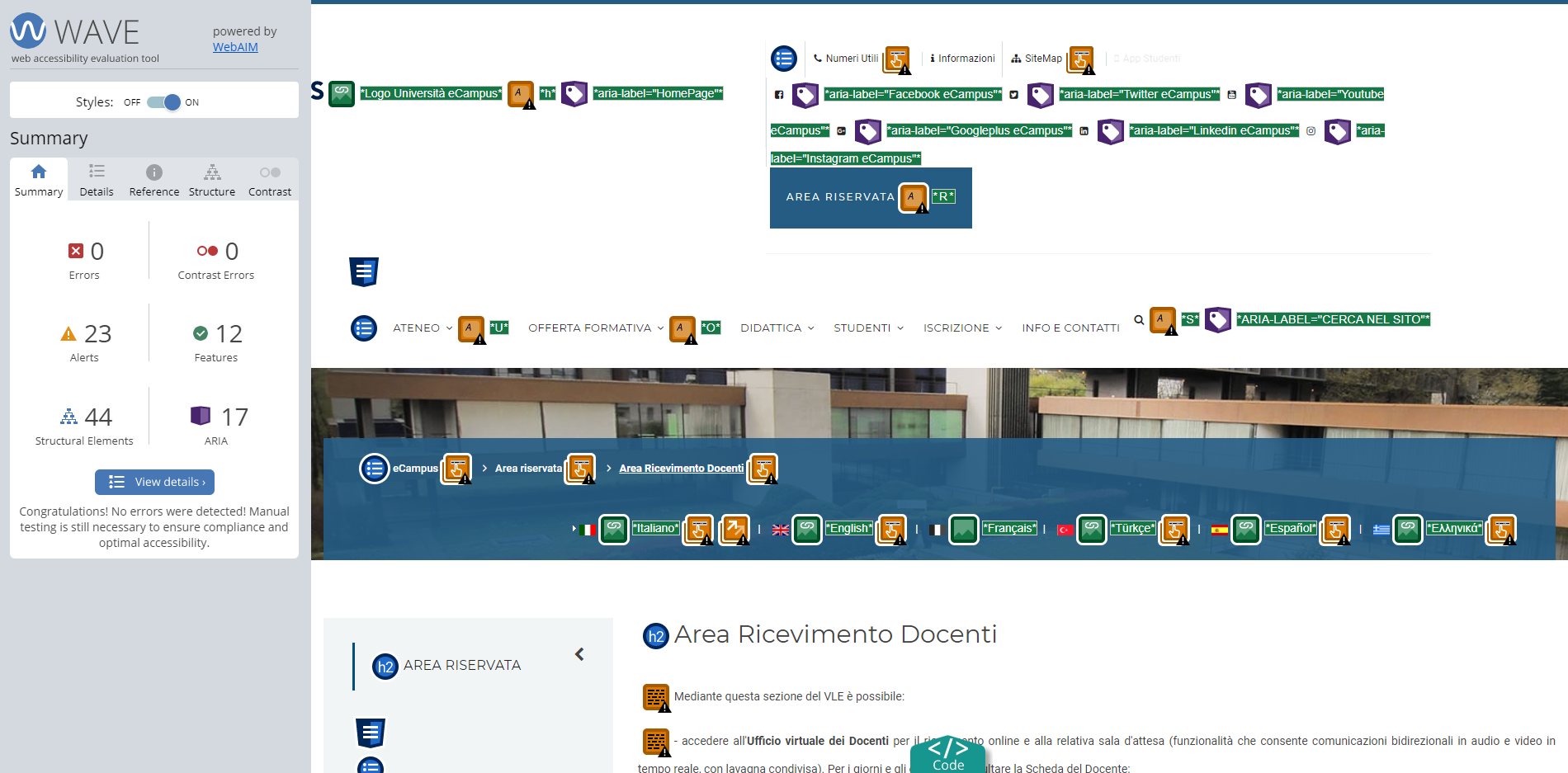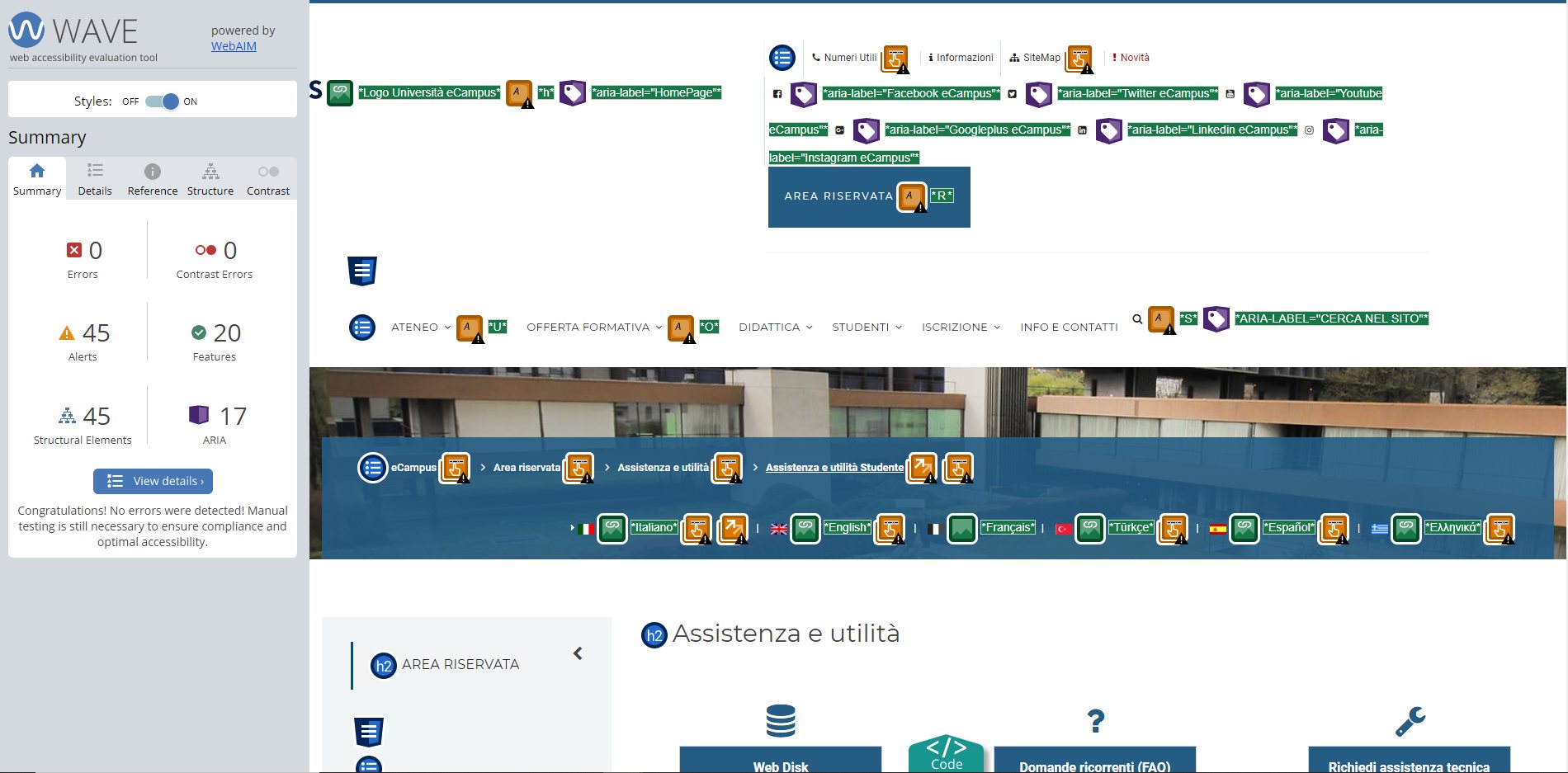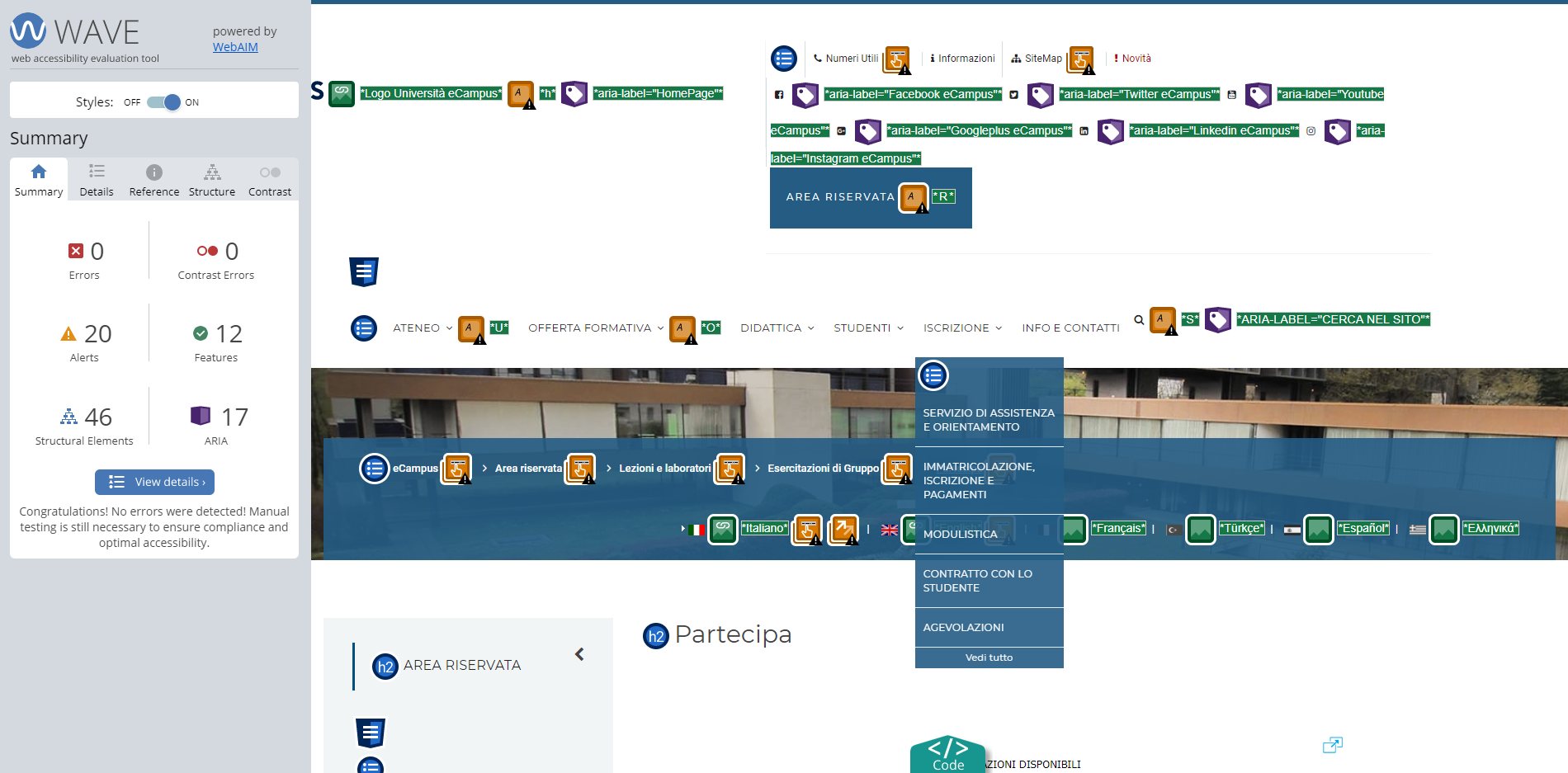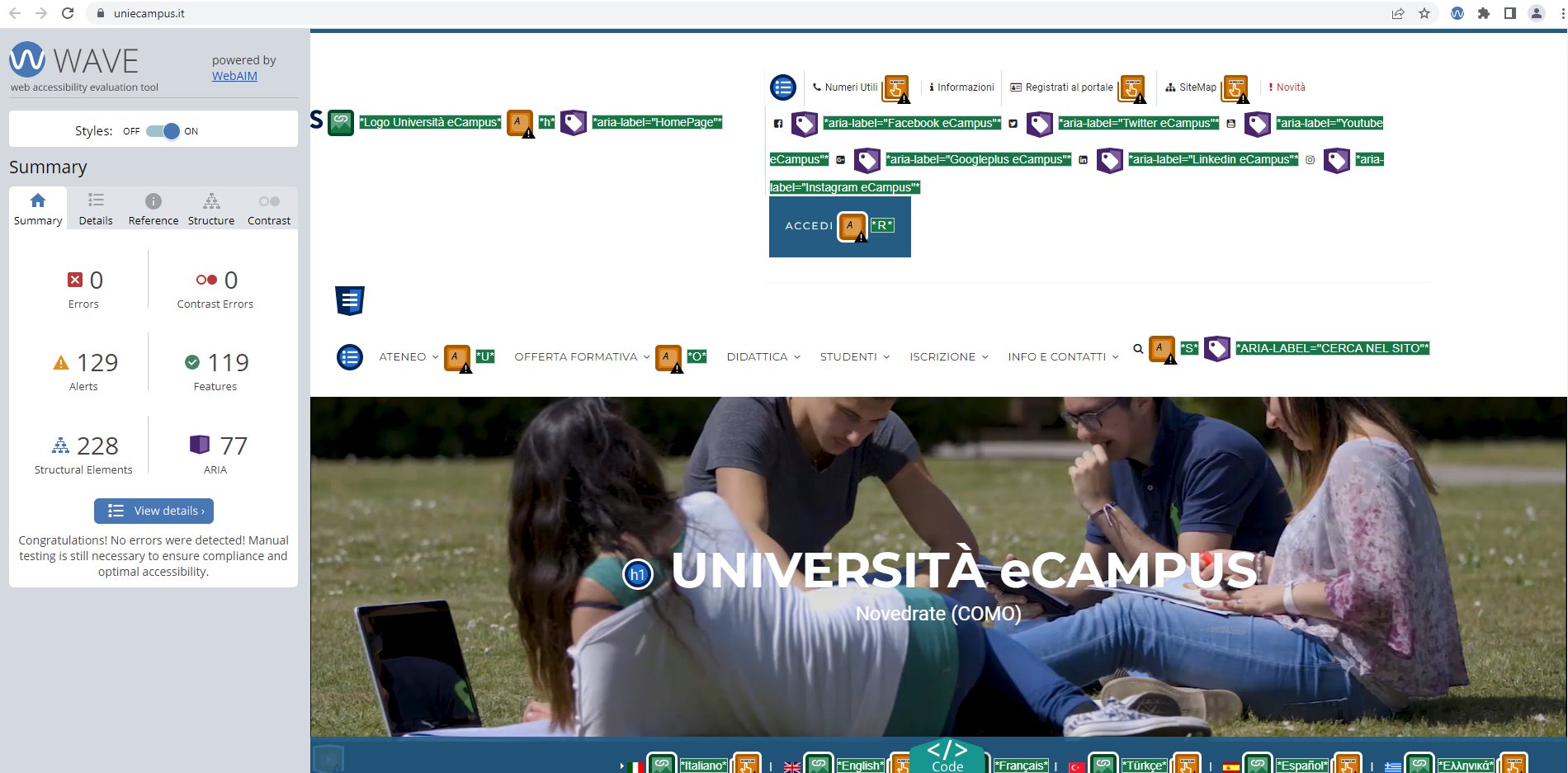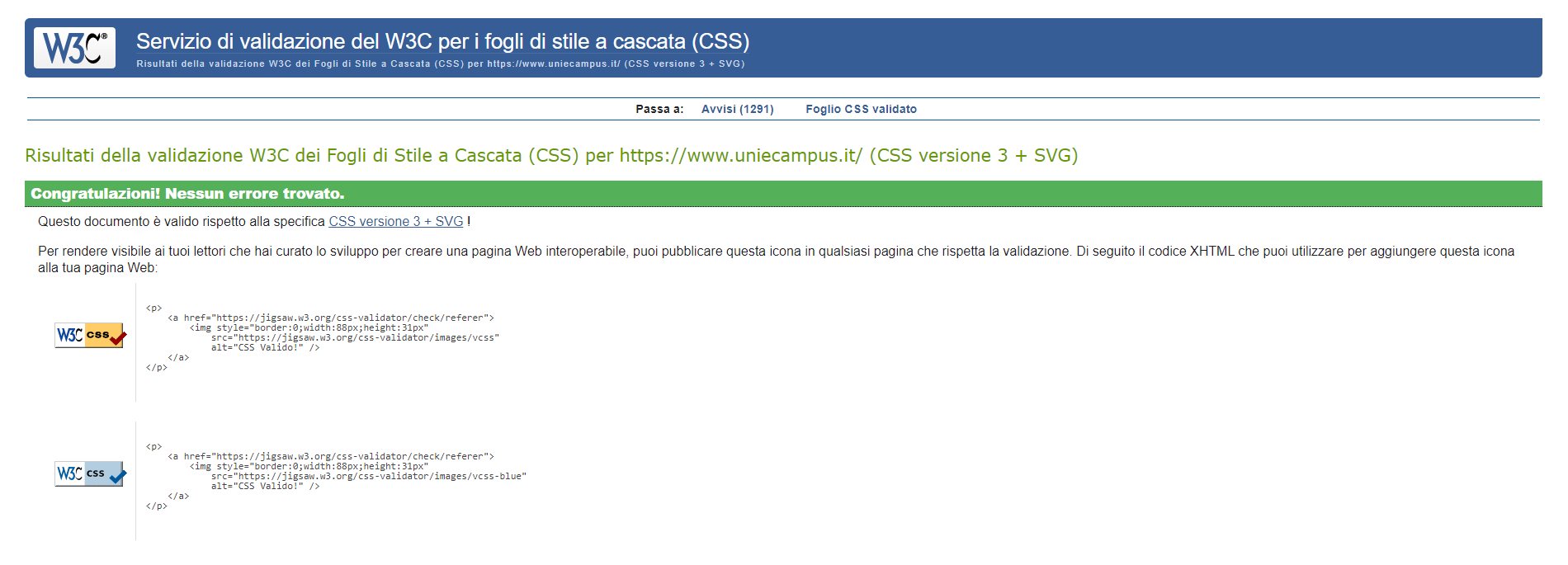 Periodicamente il portale viene sottoposto a test automatizzati di accessibilità e di usabilità (il portale è responsive, quindi fruibile anche da strumenti diversi dallo schermo del computer, quali tablet e smartphone), di cui si possono consultare di seguito i risultati.