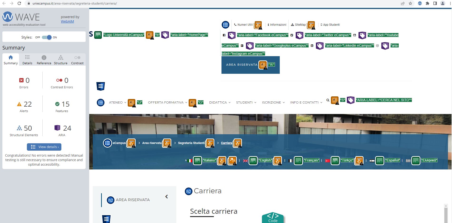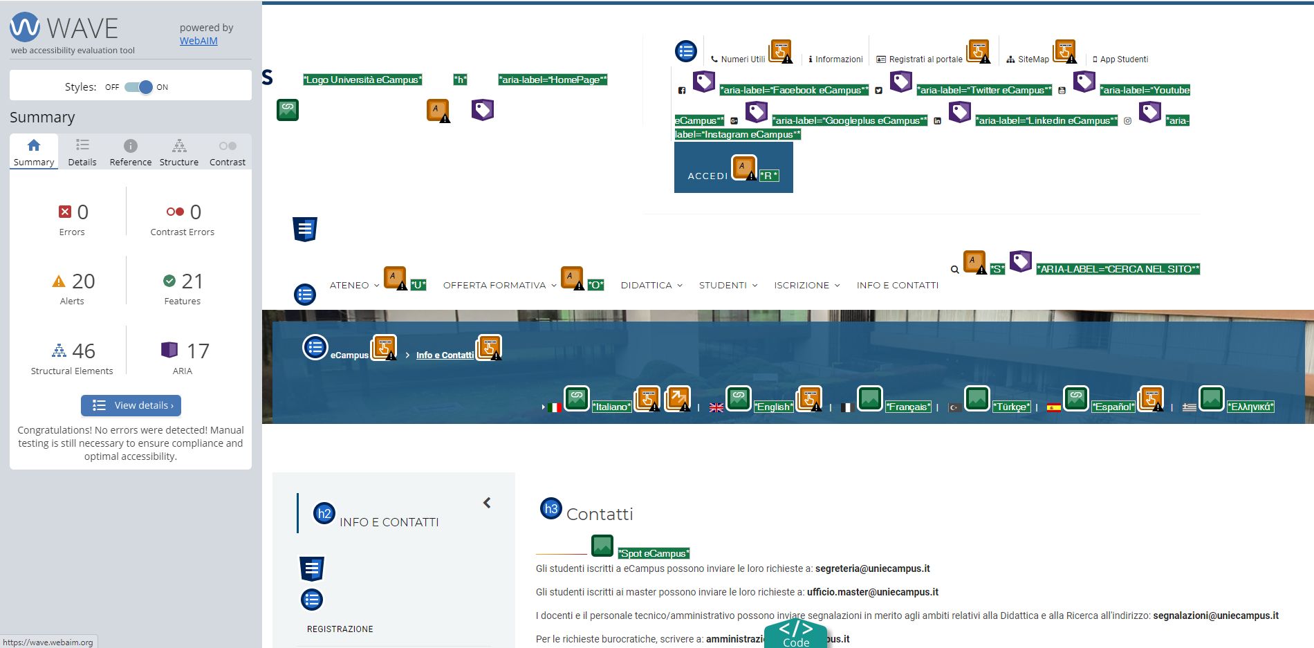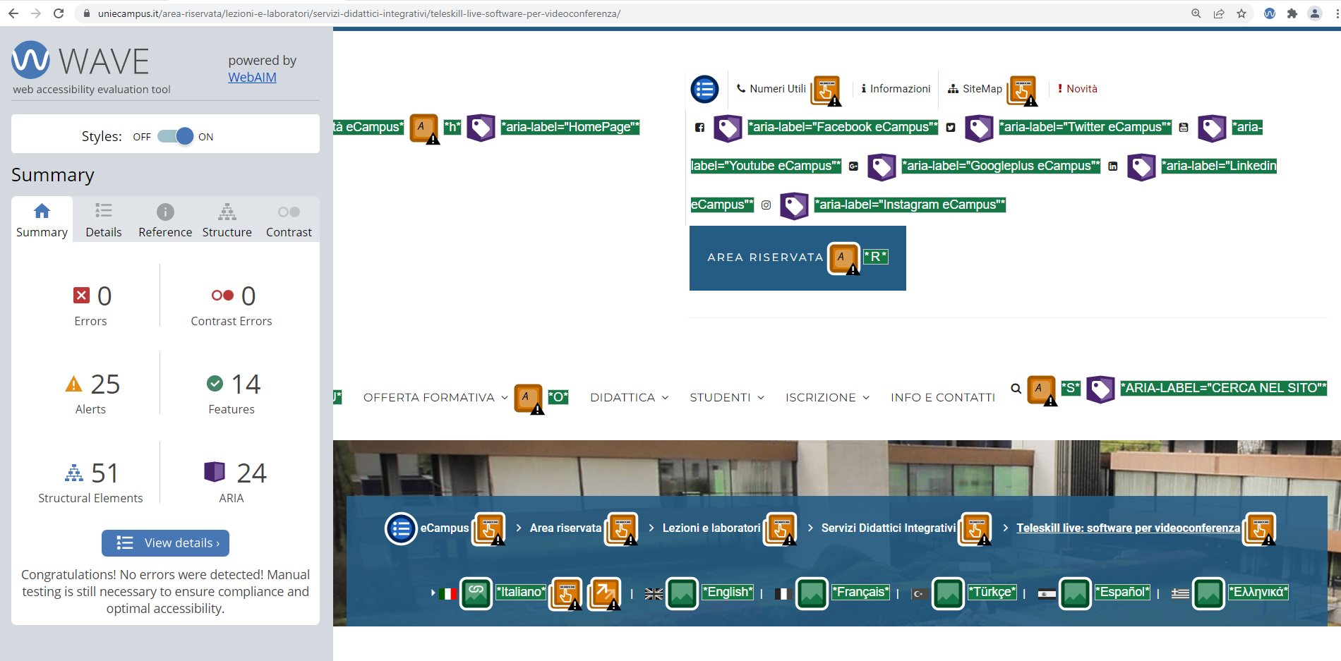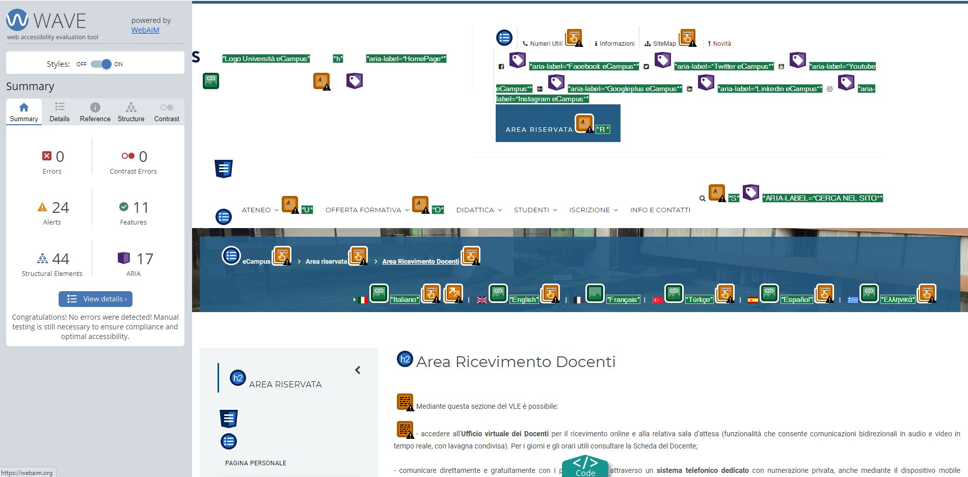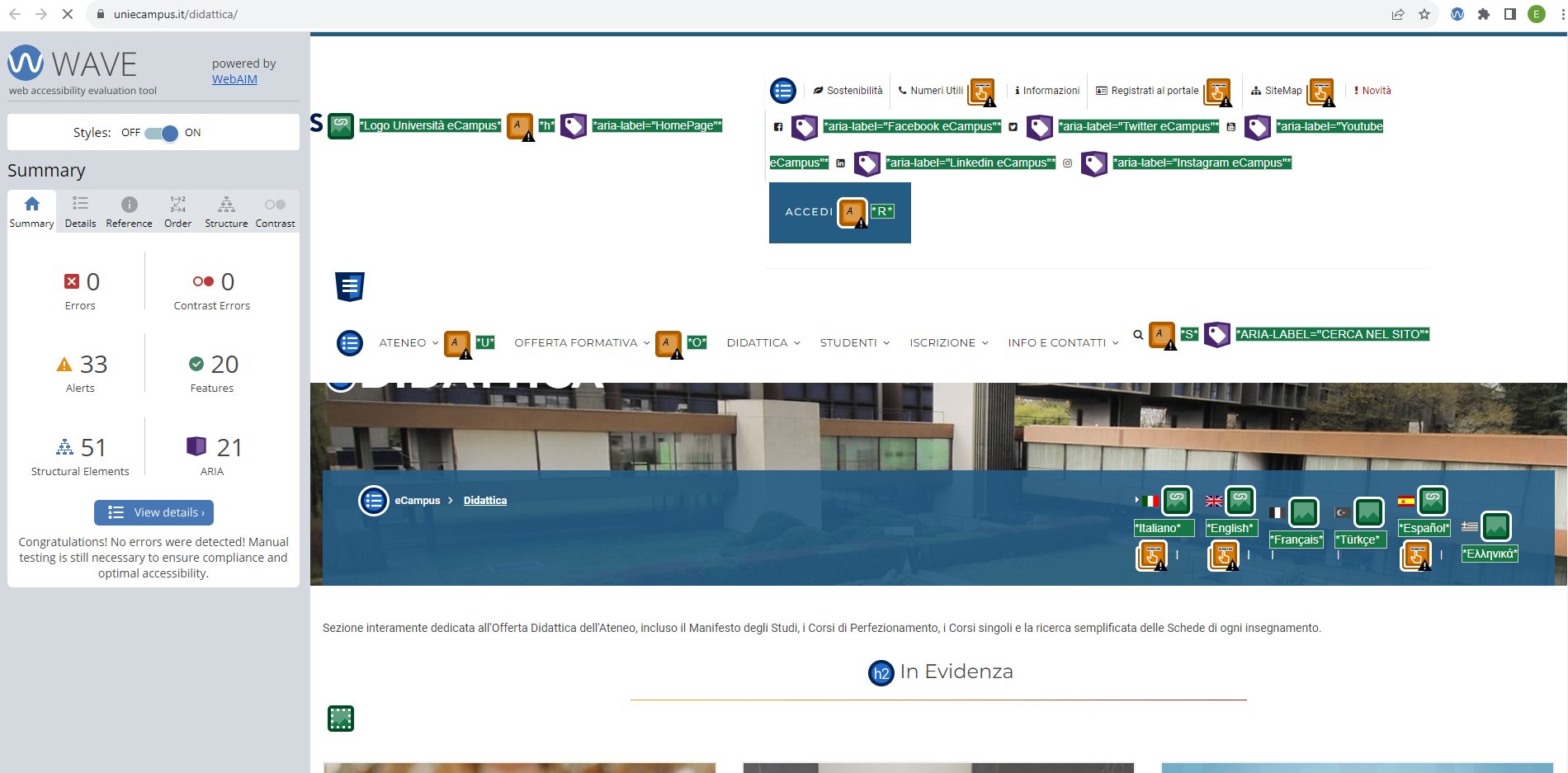 Periodicamente il portale viene sottoposto a test automatizzati di accessibilità e di usabilità (il portale è responsive, quindi fruibile anche da strumenti diversi dallo schermo del computer, quali tablet e smartphone), di cui si possono consultare di seguito i risultati.
