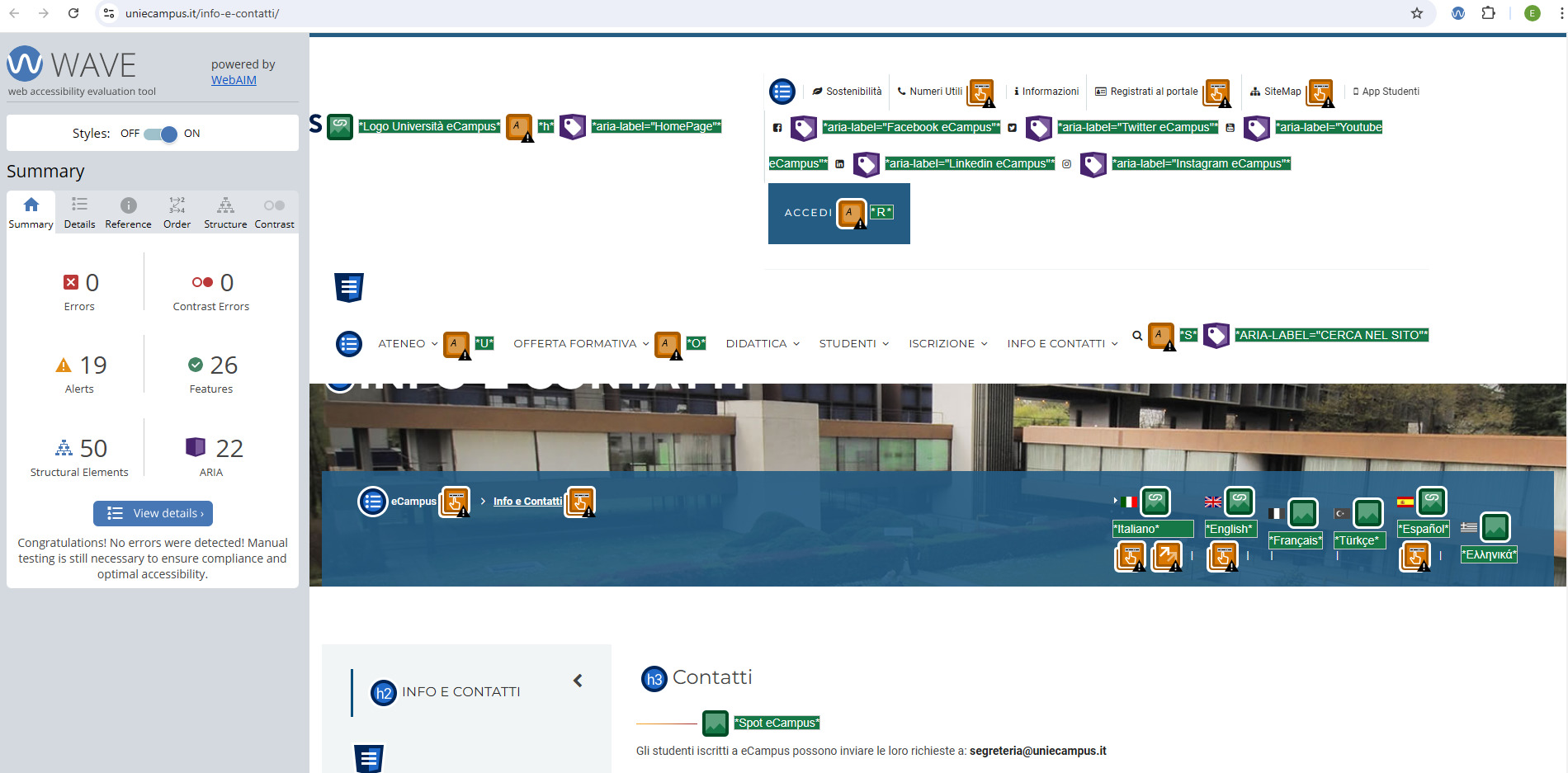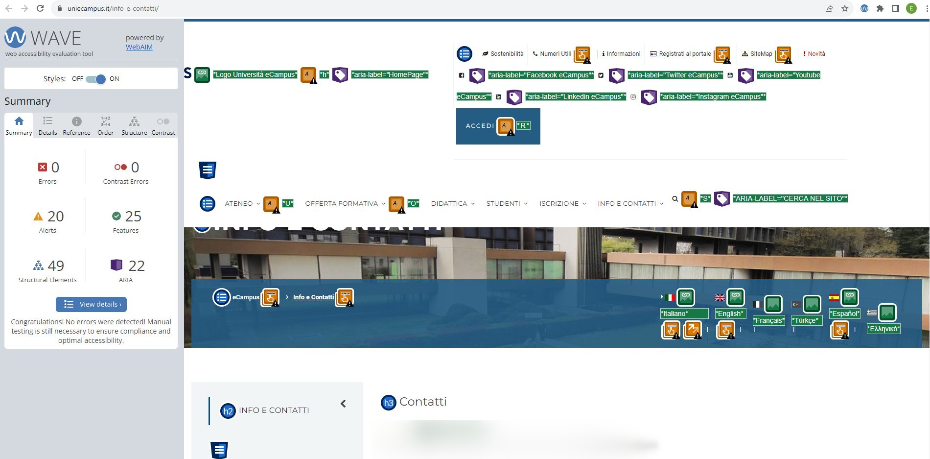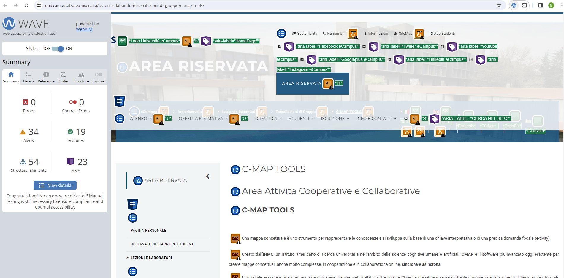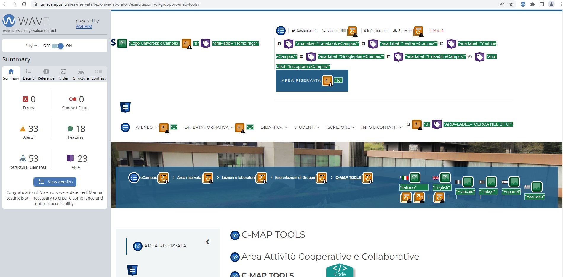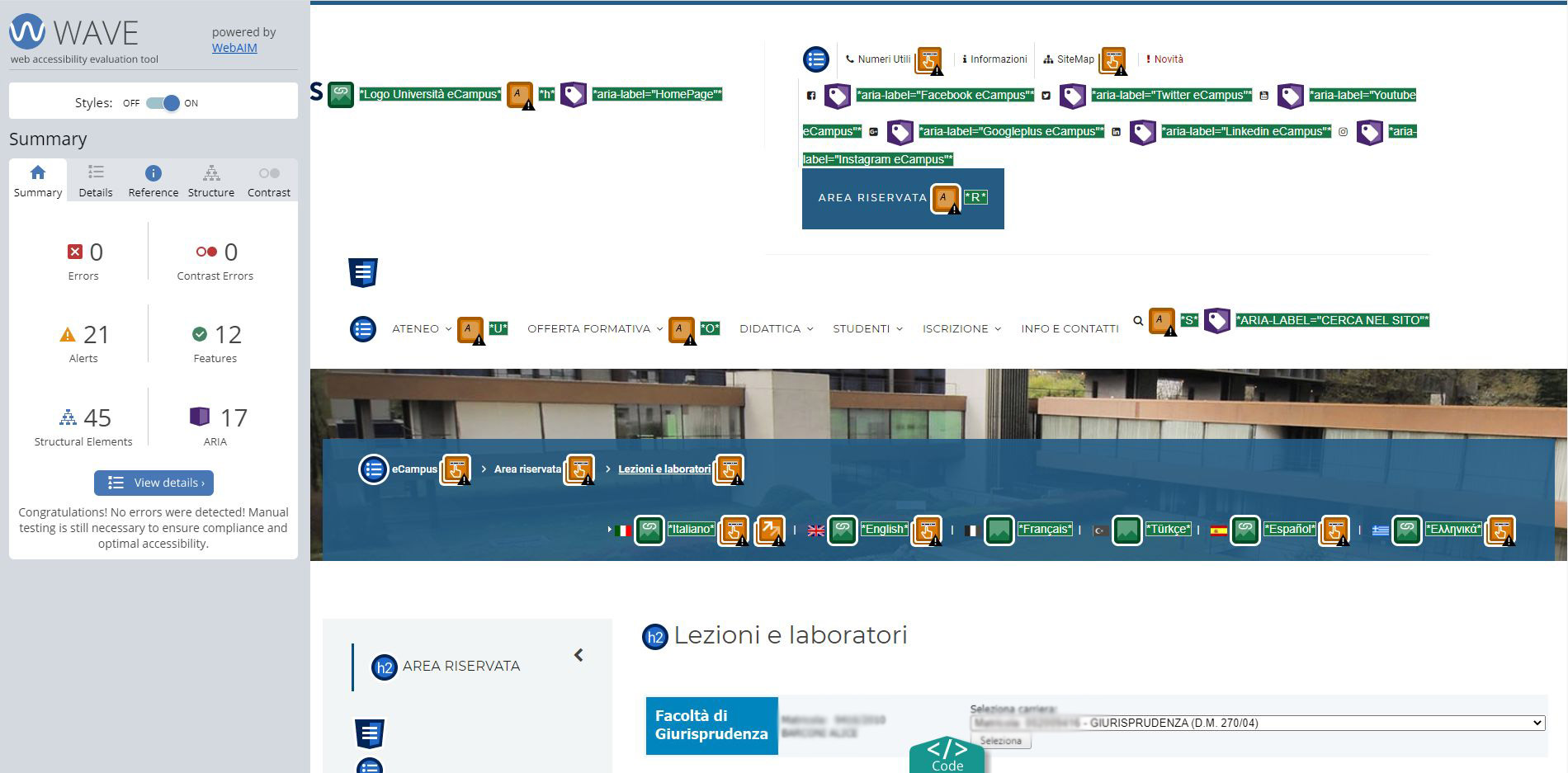 Periodicamente il portale viene sottoposto a test automatizzati di accessibilità e di usabilità (il portale è responsive, quindi fruibile anche da strumenti diversi dallo schermo del computer, quali tablet e smartphone), di cui si possono consultare di seguito i risultati.