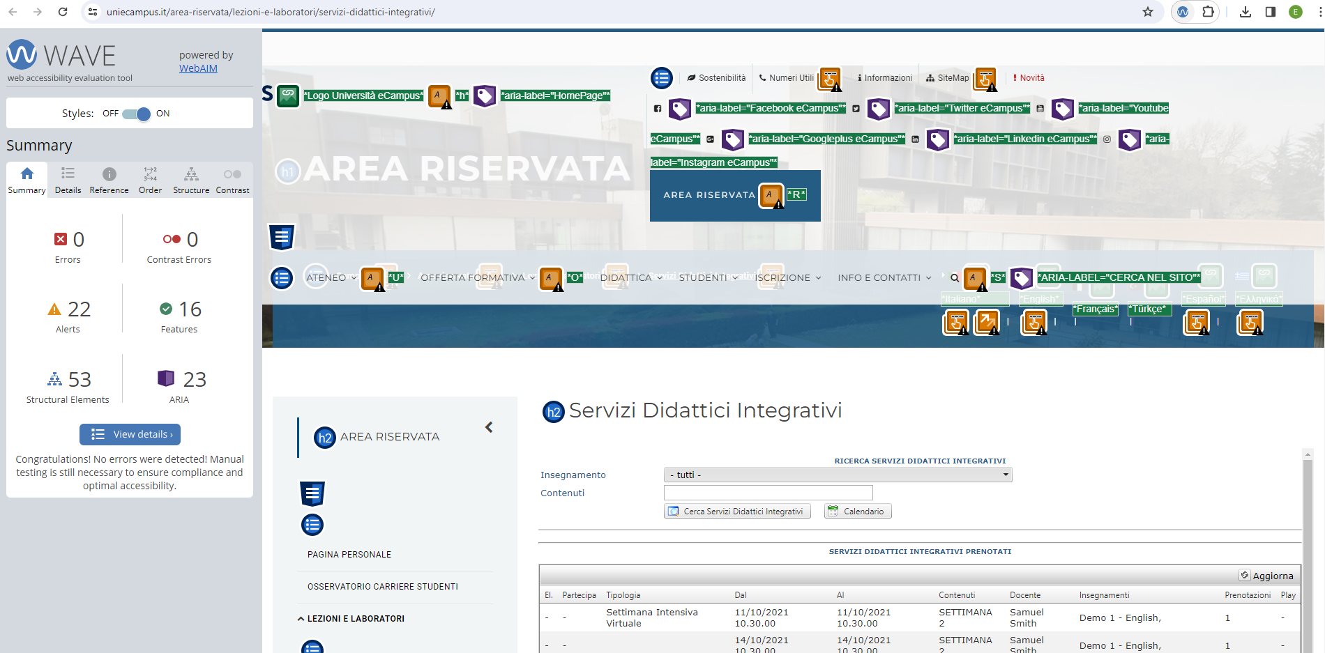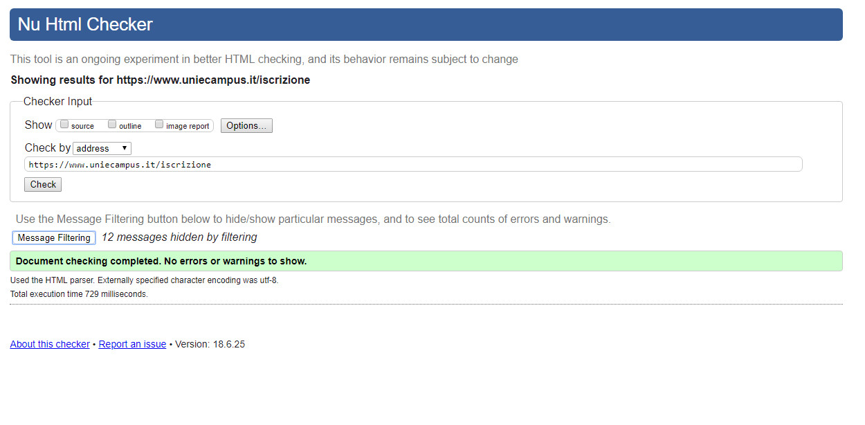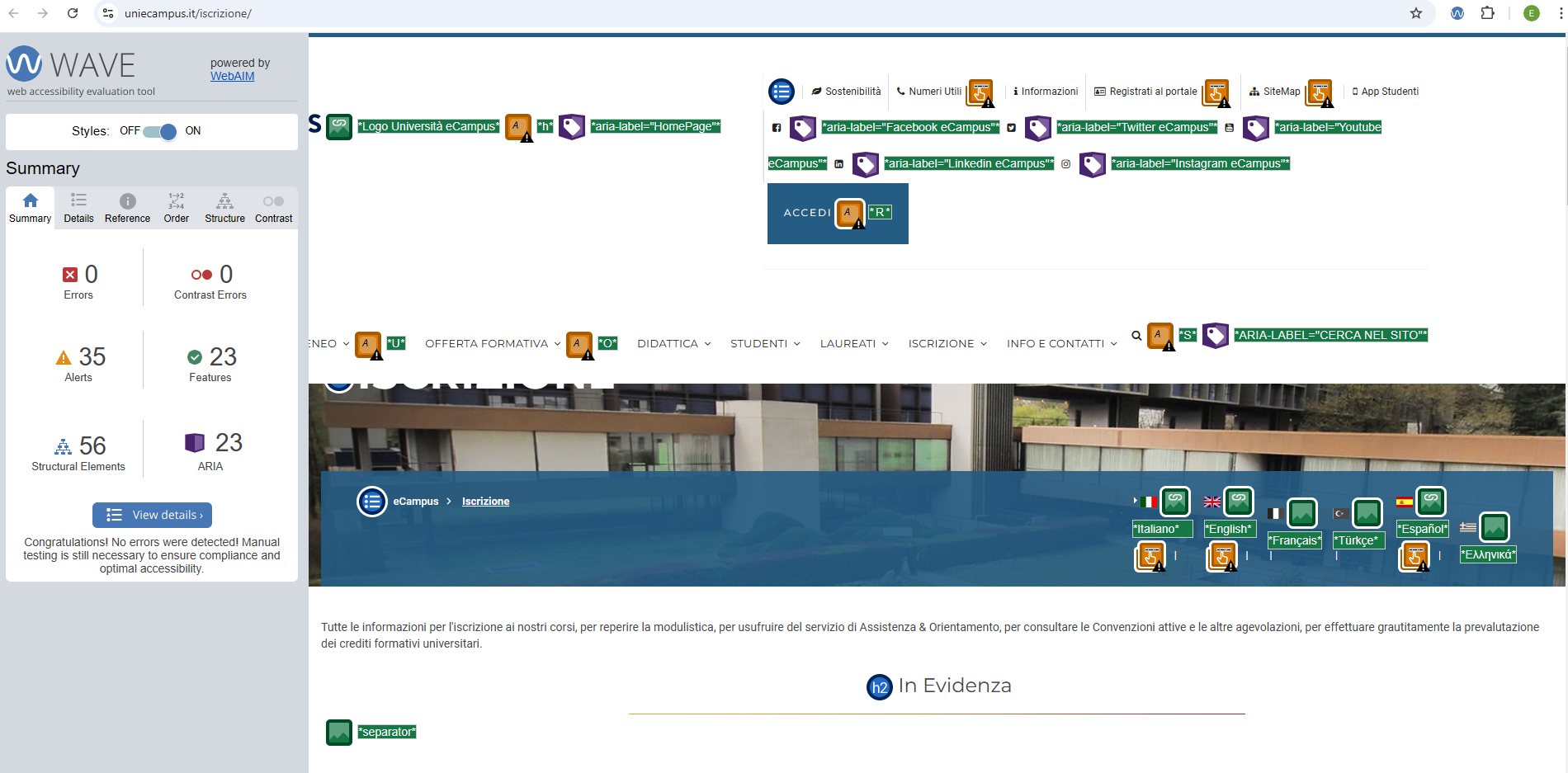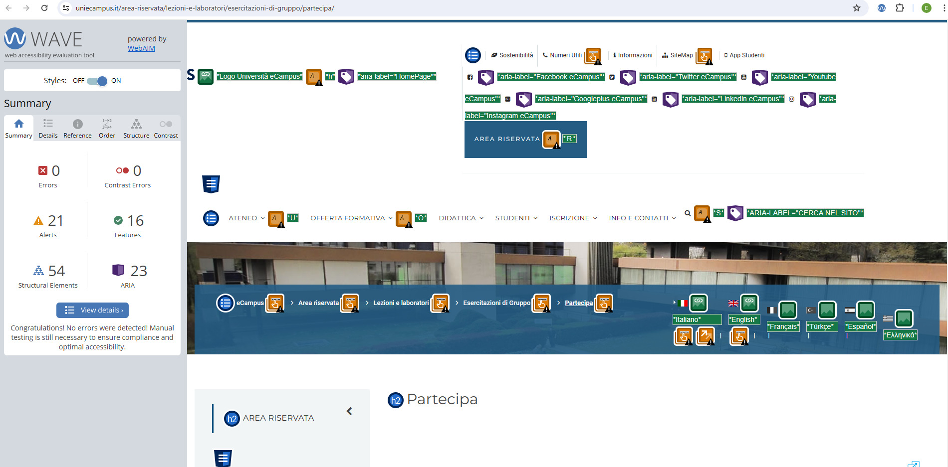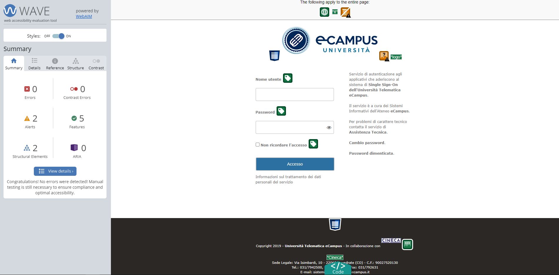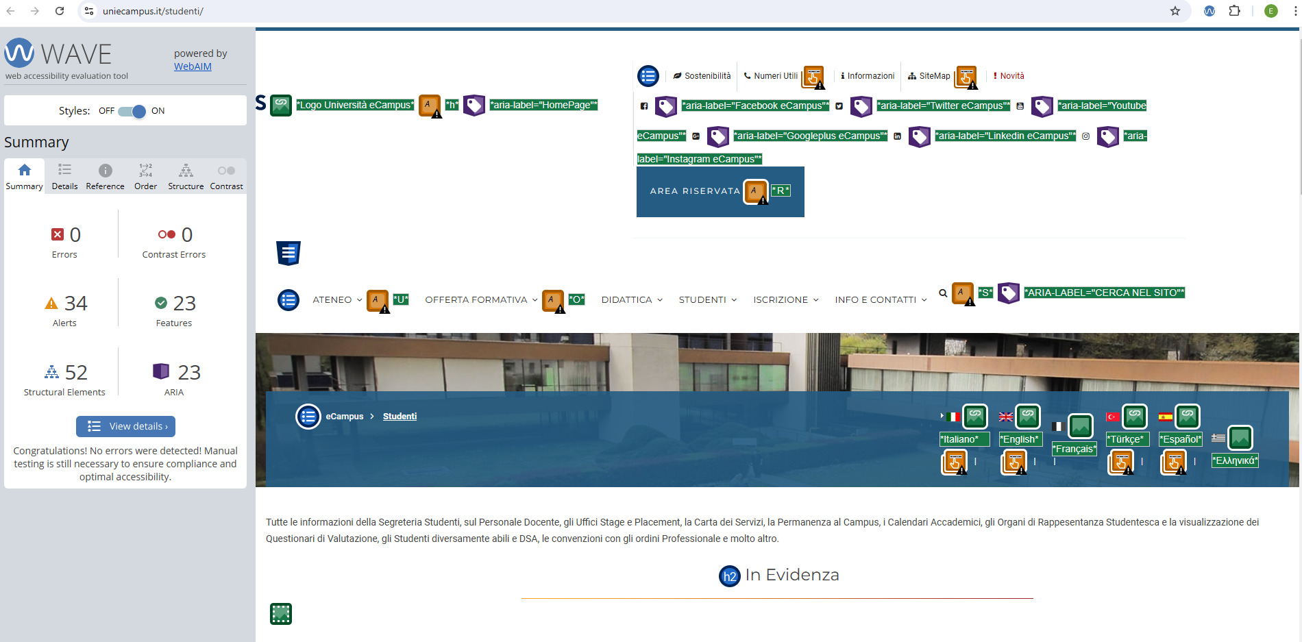 Periodicamente il portale viene sottoposto a test automatizzati di accessibilità e di usabilità (il portale è responsive, quindi fruibile anche da strumenti diversi dallo schermo del computer, quali tablet e smartphone), di cui si possono consultare di seguito i risultati.