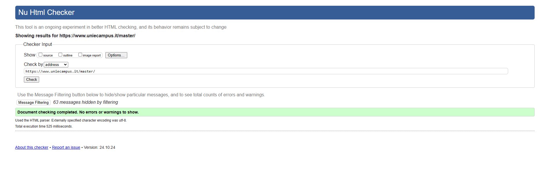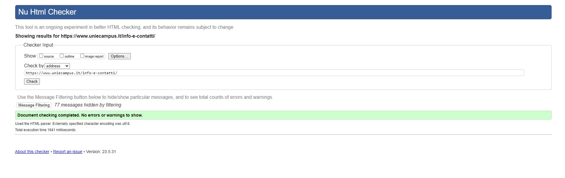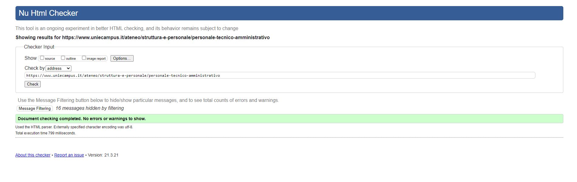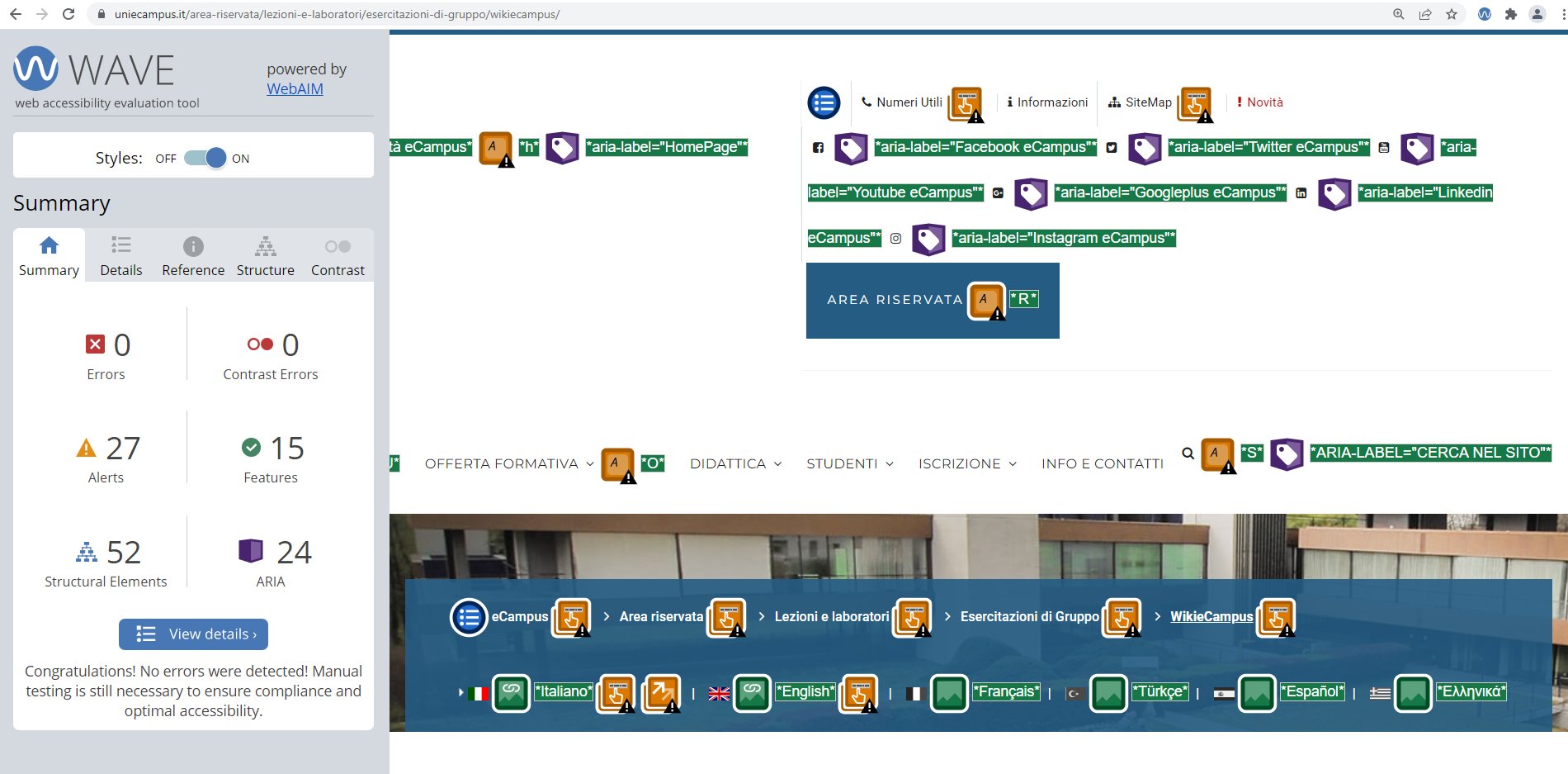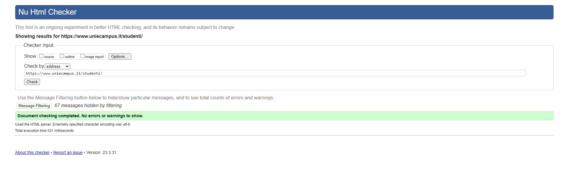 Periodicamente il portale viene sottoposto a test automatizzati di accessibilità e di usabilità (il portale è responsive, quindi fruibile anche da strumenti diversi dallo schermo del computer, quali tablet e smartphone), di cui si possono consultare di seguito i risultati.