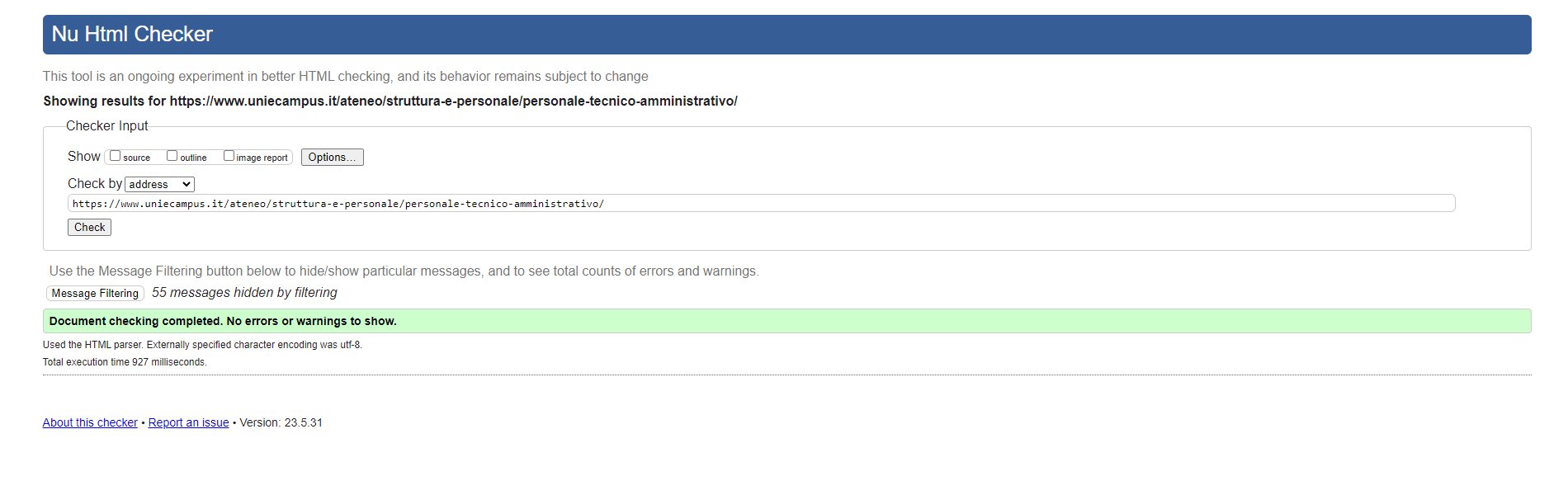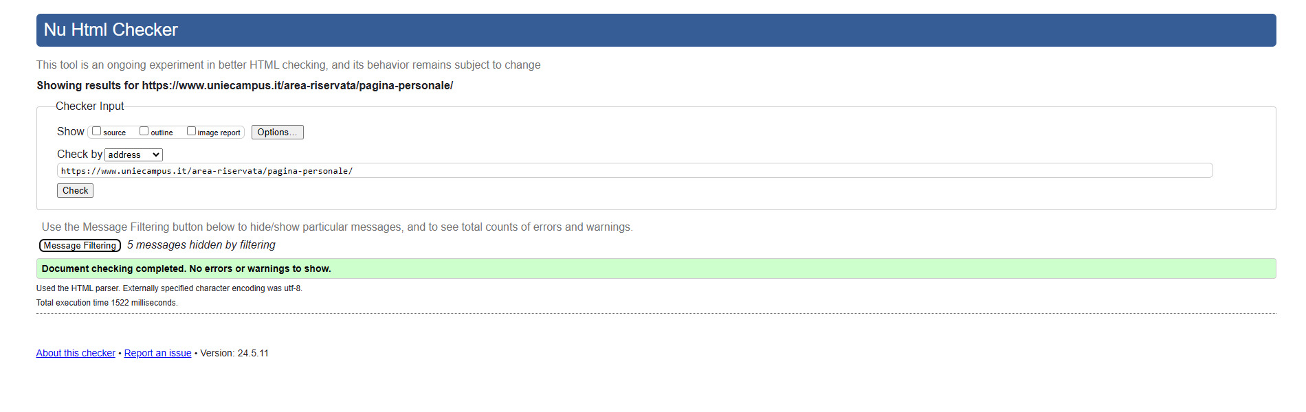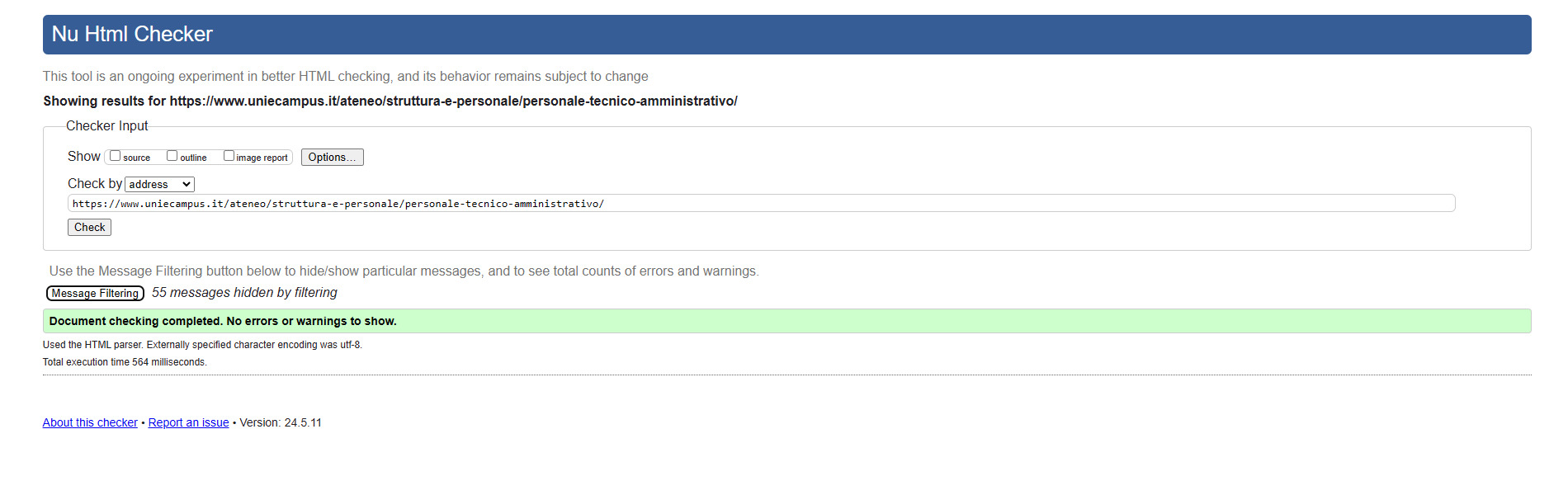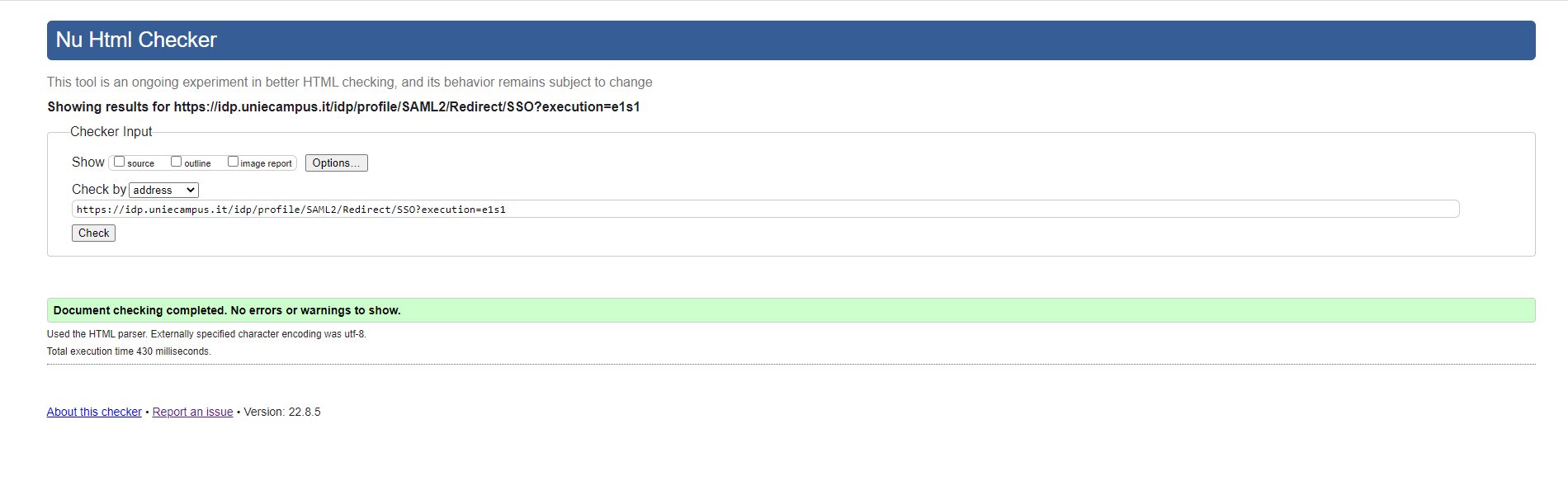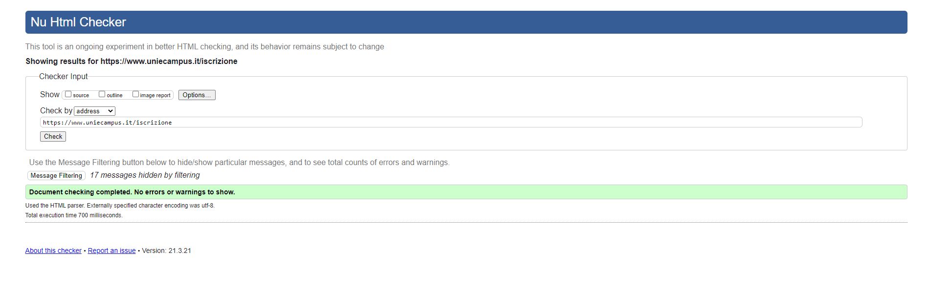 Periodicamente il portale viene sottoposto a test automatizzati di accessibilità e di usabilità (il portale è responsive, quindi fruibile anche da strumenti diversi dallo schermo del computer, quali tablet e smartphone), di cui si possono consultare di seguito i risultati.