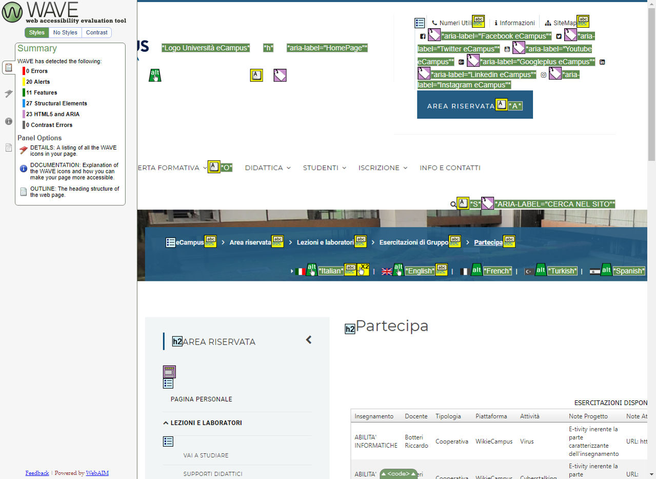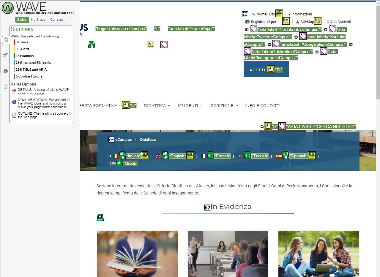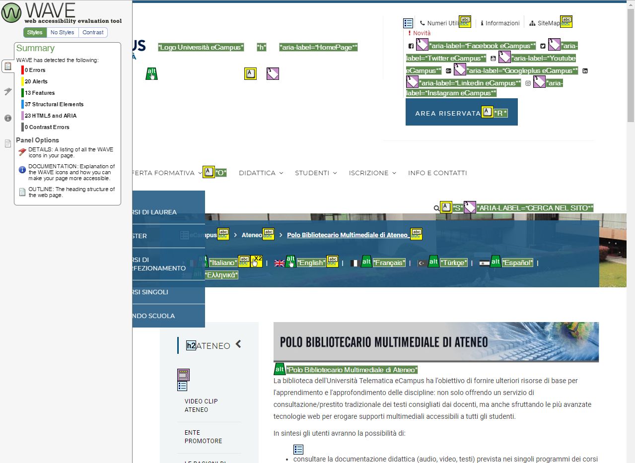 Nella valutazione del grado di accessibilità delle risorse facenti parte del portale sono state usate applicazioni di supporto (oggettivo) alla validazione, i risultati delle verifiche (soggettive) da parte di utenti interessati (SDA) e i contributi di personale qualificato in materia.