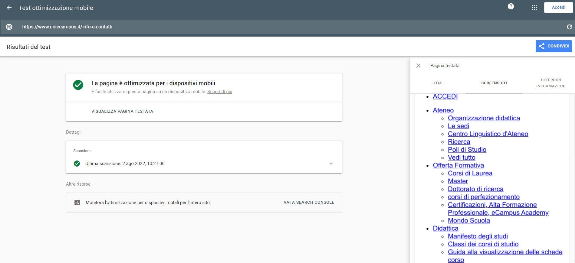 Test di accessibilità